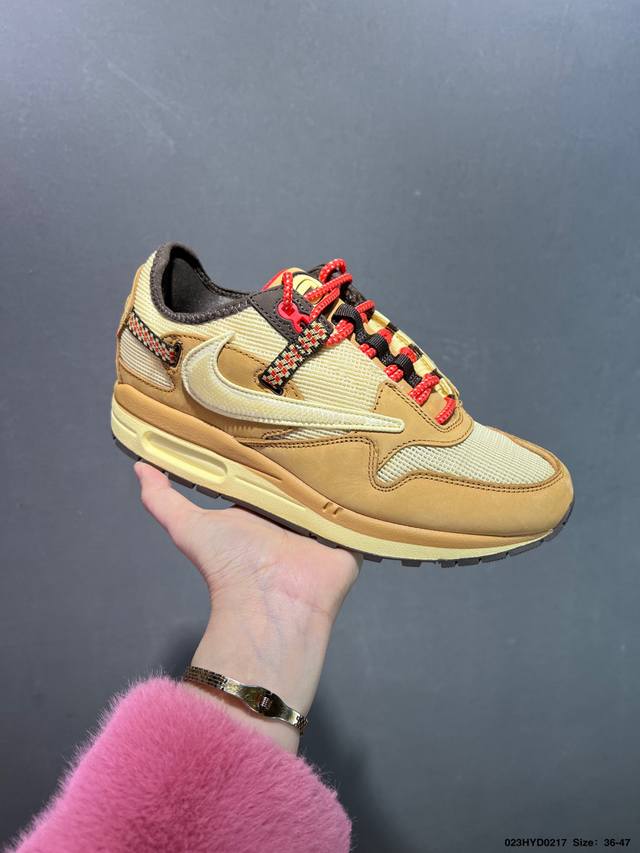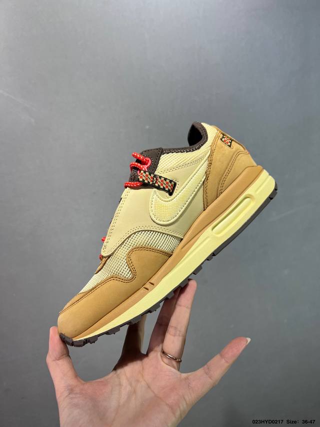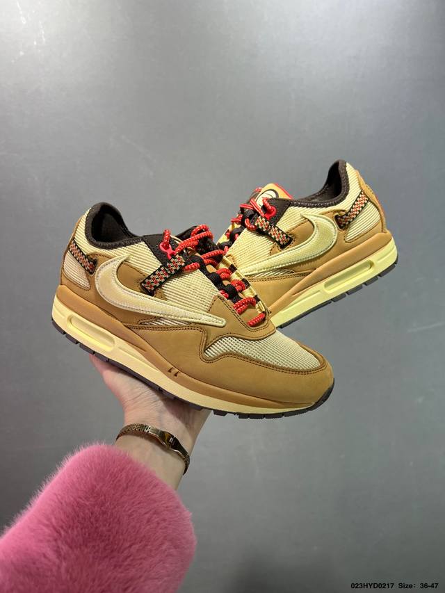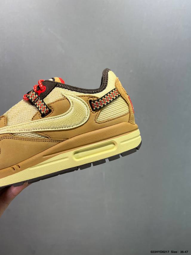 公司级Travis Scott X Nk Air Max 1 “Cactus Jack” Ts联名 小麦色 Do9392-700 鞋款采用棕色及乳白色打造鞋面
