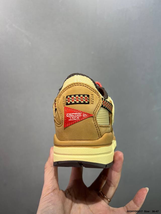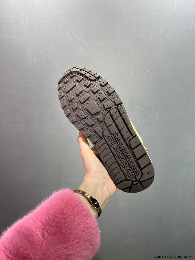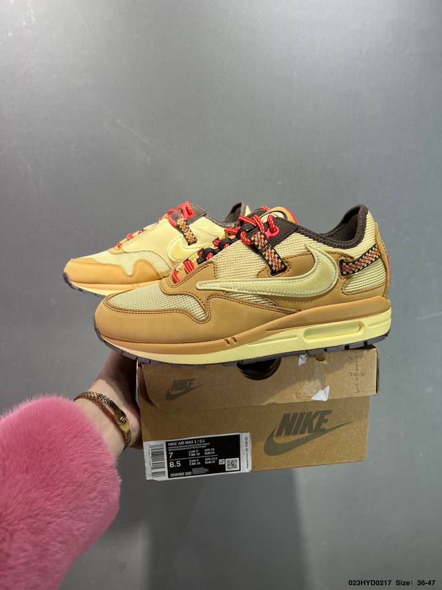 公司级Travis Scott X Nk Air Max 1 “Cactus Jack” Ts联名 小麦色 Do9392-700 鞋款采用棕色及乳白色打造鞋面 在鞋款前后部分皆包裹有咖啡色护边 鞋侧的 Swoosh 依旧进行了倒置处理 也是 Travis Scott 的标志性设计 鞋款后跟处点缀有三角形 Logo 鞋底部分采用黄色搭配深色外底打造 鞋舌、鞋跟均有彰显联名身份的图案装点 材质上则是尼龙网面、磨砂皮革等组合而成 质感、细节均有着不错的表现 Size:36 36.5 37.5 38 38.5 3