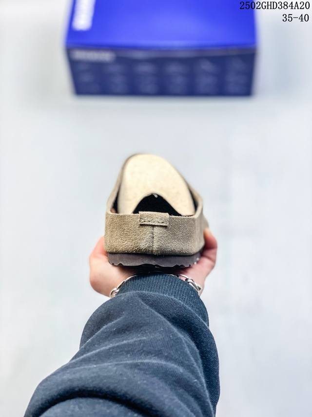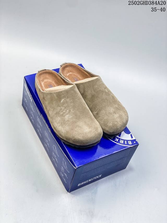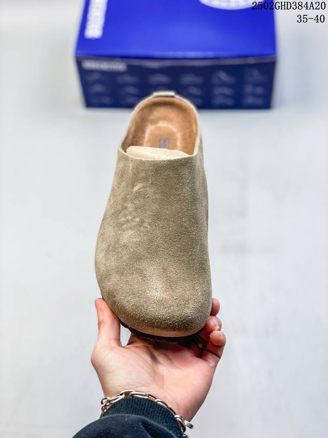 经典品质 德国勃肯男女款牛皮绒面革软底Boston包头拖鞋