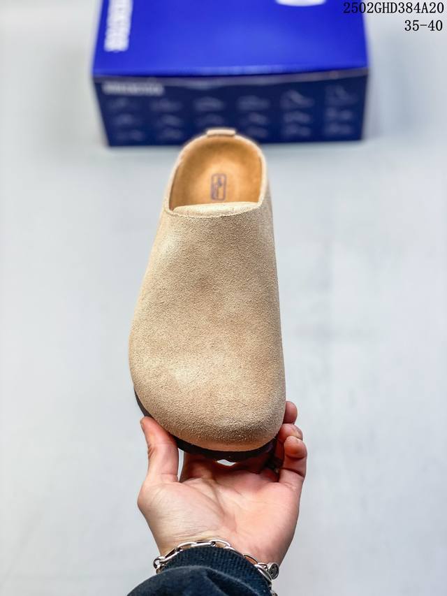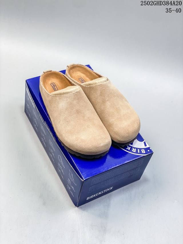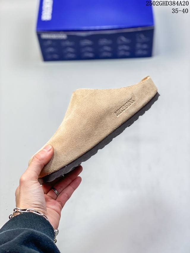 经典品质 德国勃肯男女款牛皮绒面革软底Boston包头拖鞋