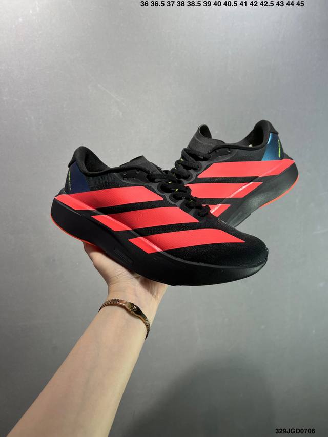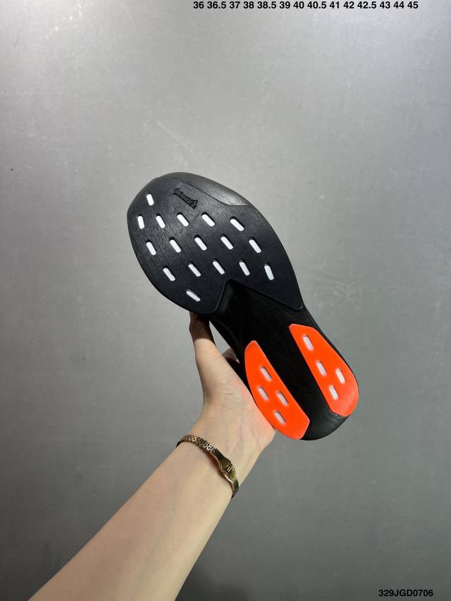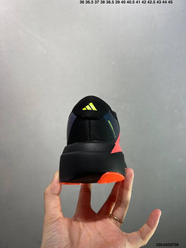 带碳板Ad Adizero Evo Sl Jr3414 阿迪超轻透气缓震跑鞋 #以令人难以置信的138克重量,刷新了跑鞋轻量化的记录,阿迪在材料科学和工艺技术上