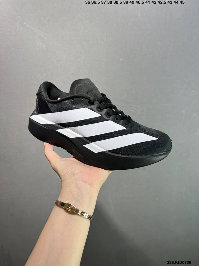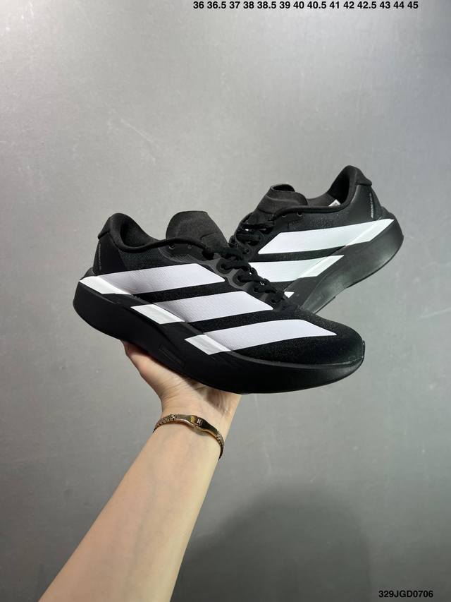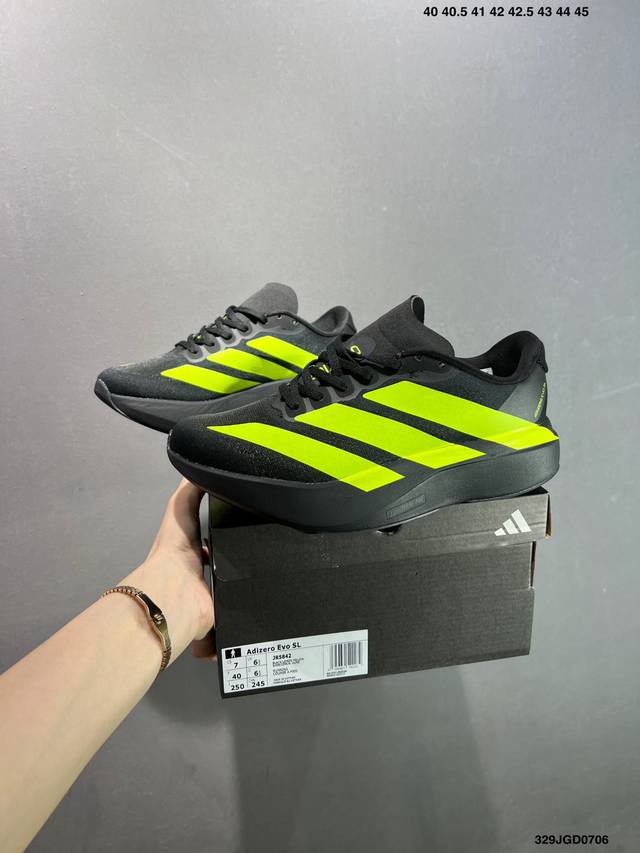 带碳板Ad Adizero Evo Sl Jr3414 阿迪超轻透气缓震跑鞋 #以令人难以置信的138克重量,刷新了跑鞋轻量化的记录,阿迪在材料科学和工艺技术上