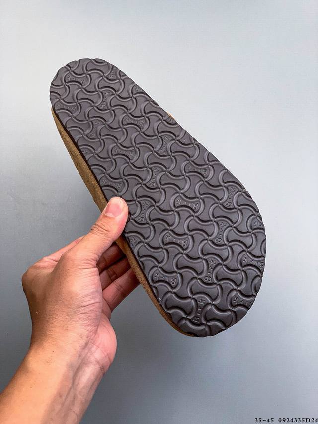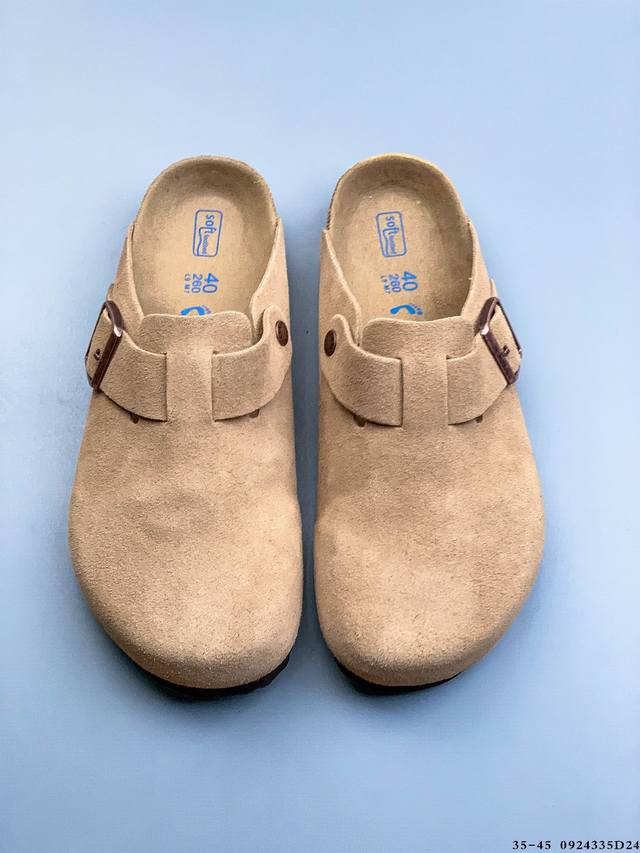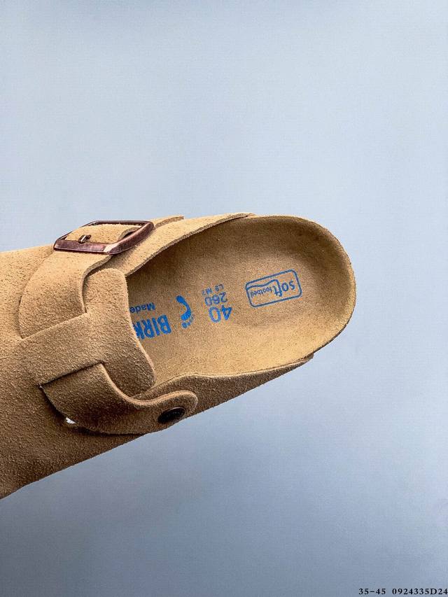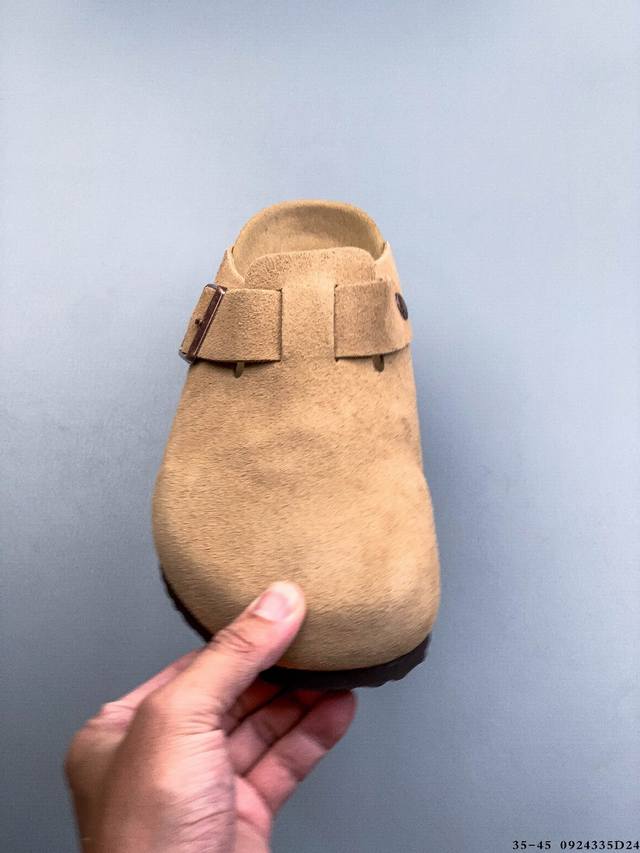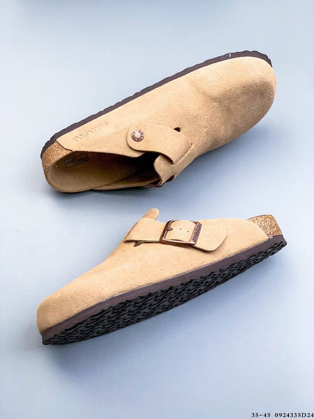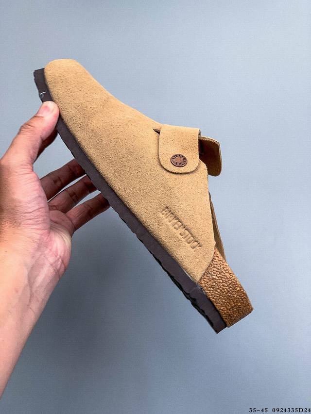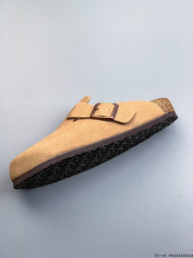 德国百年知名鞋履品牌 博肯Birkenstock 秋冬新款 勃肯半拖凉鞋系列包头拖鞋 广东原产#采用质地柔软牛皮革 中底搭载缓震软木橡胶 外置Eva轻量片装外底