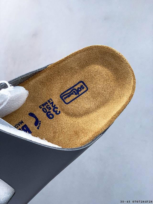德国百年知名鞋履品牌 博肯Birkenstock Zurich系列 黑色反绒 牛皮绒面革 双扣时尚凉拖 勃肯半拖凉鞋系列 亲肤透气的人造革,搭配可调节鞋扣提升穿着舒适度,人体工学设计分散脚部压力,保护脚踝,软木乳胶鞋床具有一定的收缩性,长时间穿着后能贴合脚型,Eva鞋底回弹性和抗张性力高,具有良好的防震、缓冲性!
