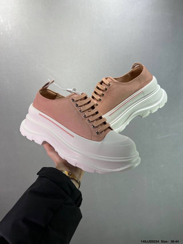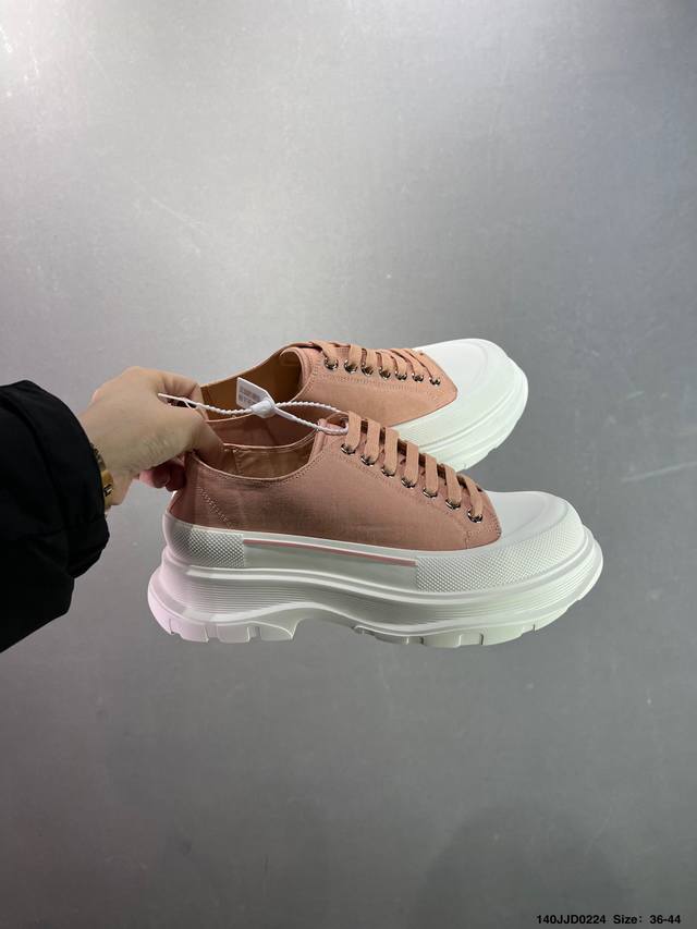 意大利高奢品牌-亚历山大 麦昆Alexander Mcqueen Oversized Sneakers 低帮时装厚底休闲运动小白板鞋““皮革白珊瑚粉麂皮尾” 粉尾色 采用丝绸硬质头层小牛皮鞋面材质 内外超软小羊皮贴脚透气及超软Pu脚感乳胶物料鞋 外置原抽真空高密度增高底 男女鞋广东原产品质 升级原楦原纸版数据开发 专柜包装物及配件 附送快递加固牛皮纸盒