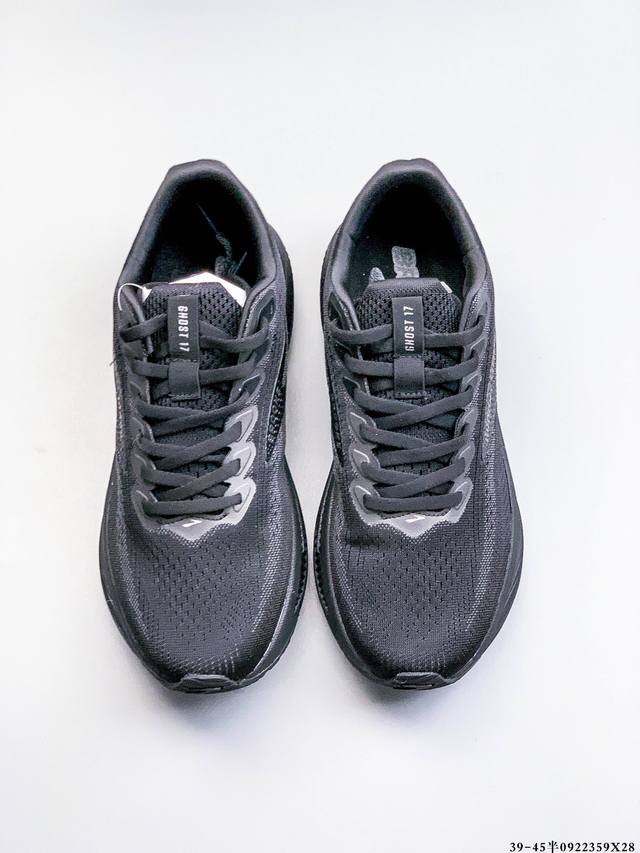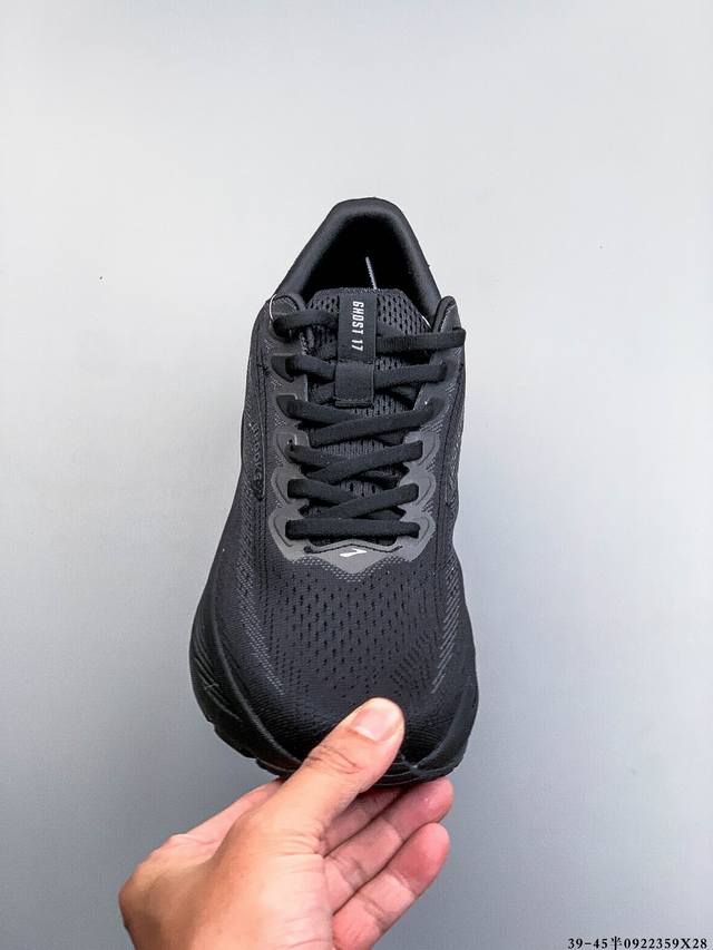 新品主推公司级高品质 布鲁克斯Brooks Ghost 幽灵 17 搭载 Dna Loft V3 氮气超临界 真爆 发泡中底,实现软弹平衡。氮气注入形成密闭气囊结构,缓震性能提升 30%,能量回馈效率较前代提升 10%。鞋面采用双层提花工程网布,外层高密度透气网孔快速排汗,内层弹性支撑框架增强包裹性。后跟 3D 模压泡棉与 Tpu 稳定片形成双重锁定结构,复杂路况下稳定性可靠。适合 5:30-6:30 Km 的慢跑配速,兼顾缓震与推进需求。 主打“全能缓震”特性,适合日常训练和长距离慢跑。