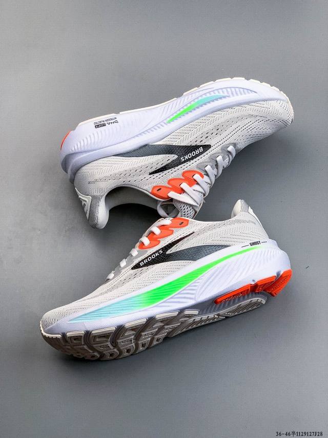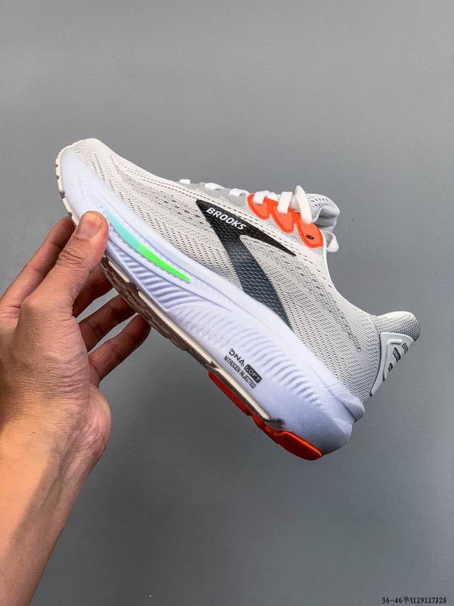 新品主推公司级高品质 布鲁克斯Brooks Ghost 幽灵 17 搭载 Dna Loft V3 氮气超临界 真爆 发泡中底,实现软弹平衡。氮气注入形成密闭气囊结构,缓震性能提升 30%,能量回馈效率较前代提升 10%。鞋面采用双层提花工程网布,外层高密度透气网孔快速排汗,内层弹性支撑框架增强包裹性。后跟 3D 模压泡棉与 Tpu 稳定片形成双重锁定结构,复杂路况下稳定性可靠。适合 5:30-6:30 Km 的慢跑配速,兼顾缓震与推进需求。 主打“全能缓震”特性,适合日常训练和长距离慢跑。 DDD 112