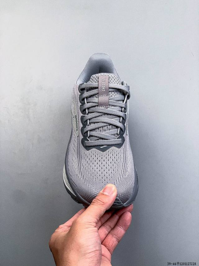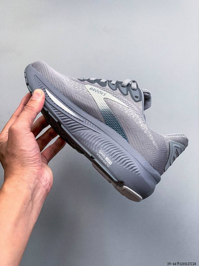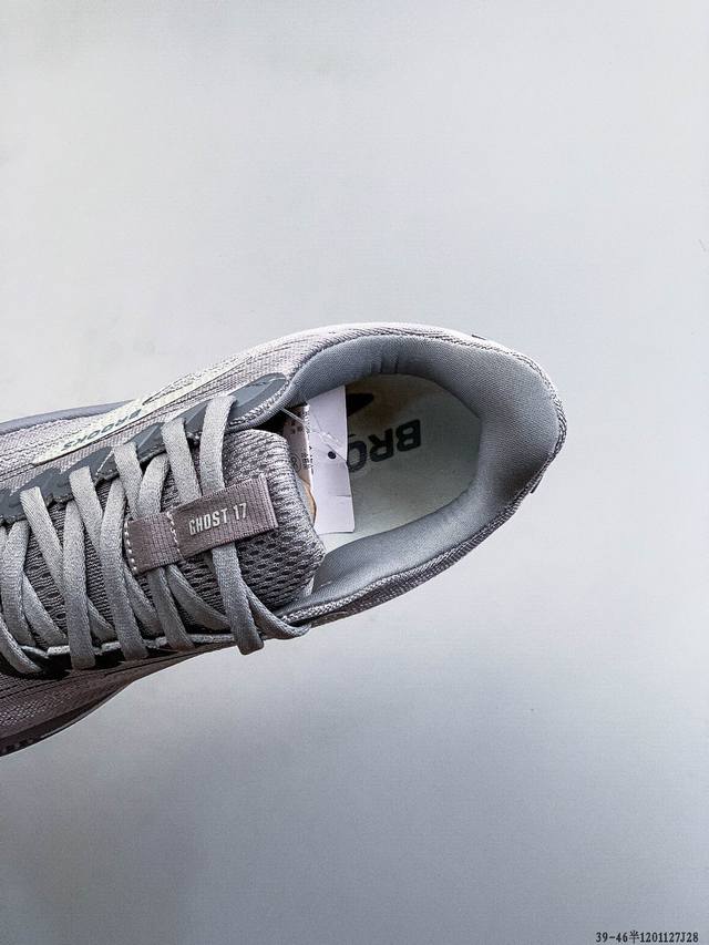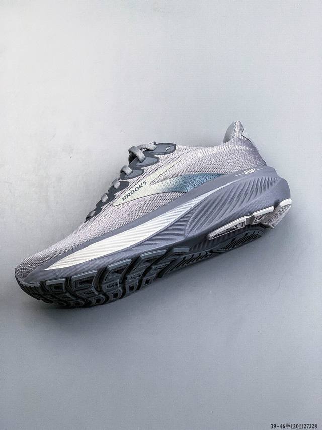 新品主推公司级高品质 布鲁克斯Brooks Ghost 幽灵 17 搭载 Dna Loft V3 氮气超临界 真爆 发泡中底,实现软弹平衡。氮气注入形成密闭气囊结构,缓震性能提升 30%,能量回馈效率较前代提升 10%。鞋面采用双层提花工程网布,外层高密度透气网孔快速排汗,内层弹性支撑框架增强包裹性。后跟 3D 模压泡棉与 Tpu 稳定片形成双重锁定结构,复杂路况下稳定性可靠。适合 5:30-6:30 Km 的慢跑配速,兼顾缓震与推进需求。 主打“全能缓震”特性,适合日常训练和长距离慢跑。 Ddd 120
