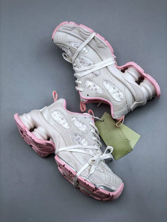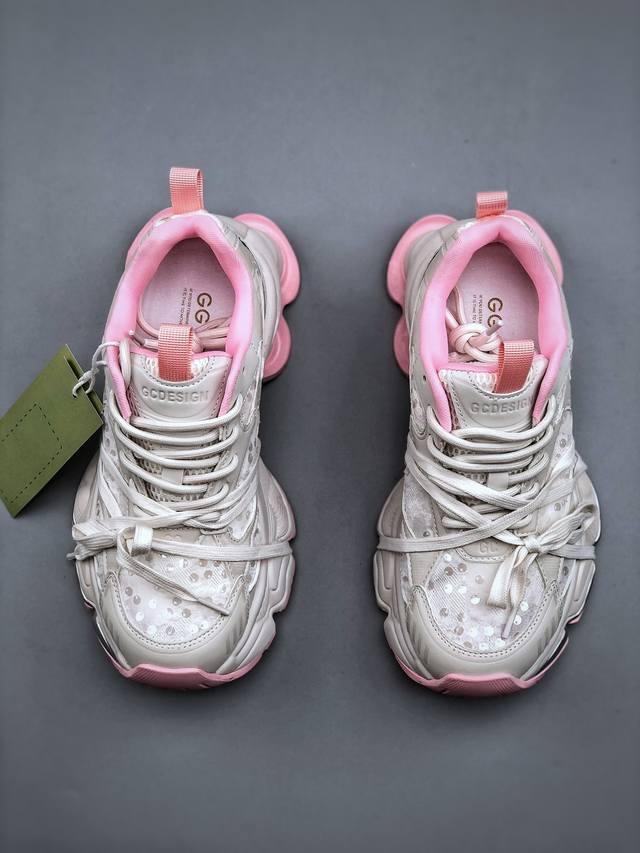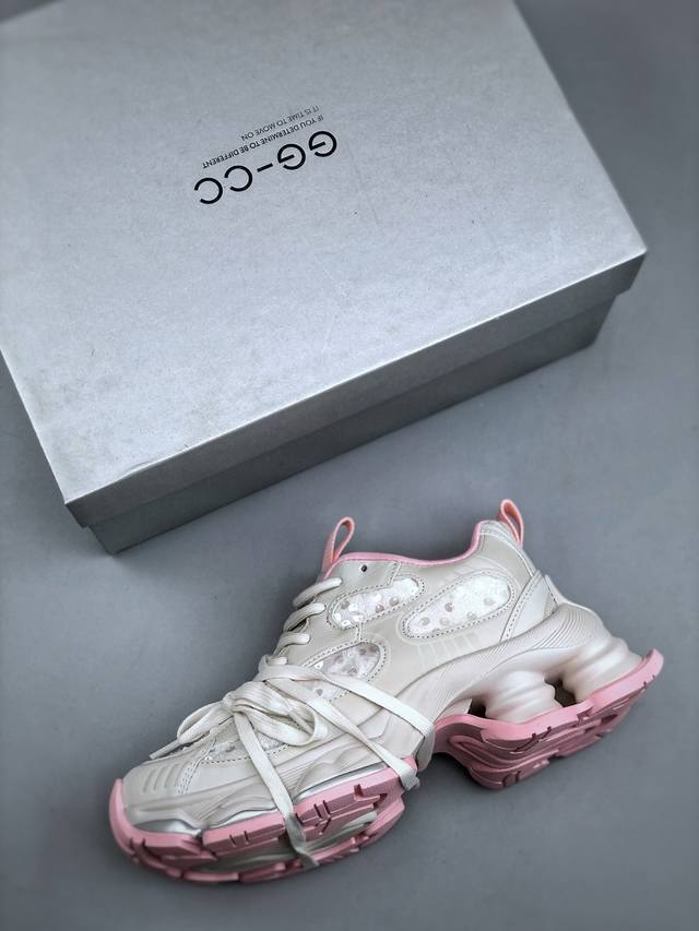 新货Gg-Cc 林允同款 5Cm厚底增高 星河粒子 月牙底绑带镂空老爹鞋
