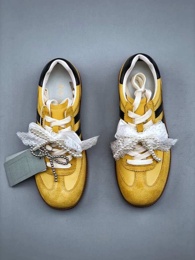 新货Gg-Cc 雷丝珍珠蝴蝶结德训鞋2.0系列阿甘复古风芭蕾舞鞋Ggcc薄底百搭休闲运动鞋系列