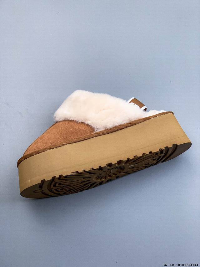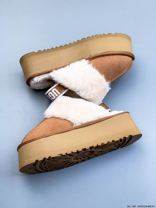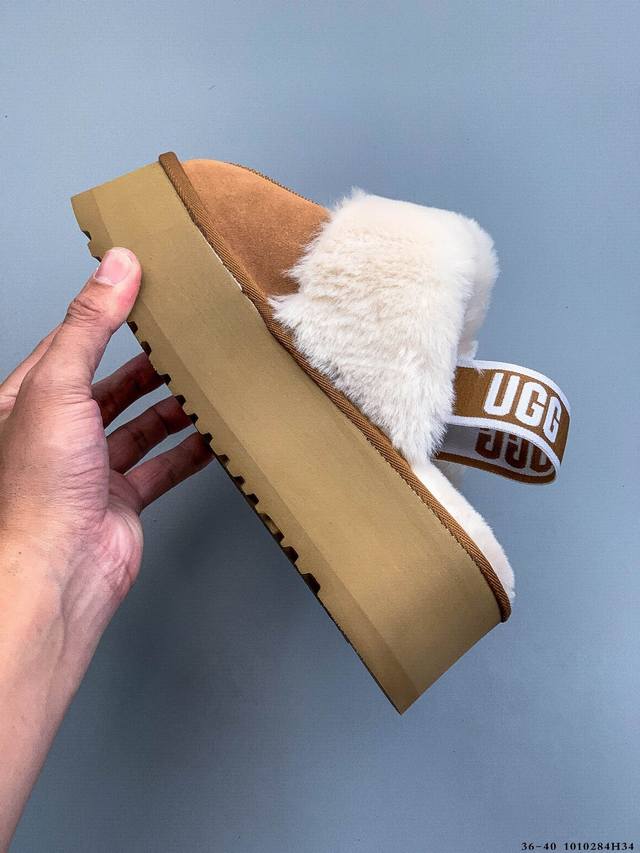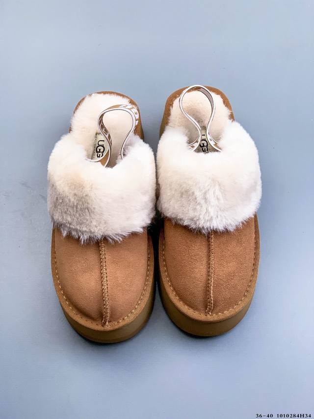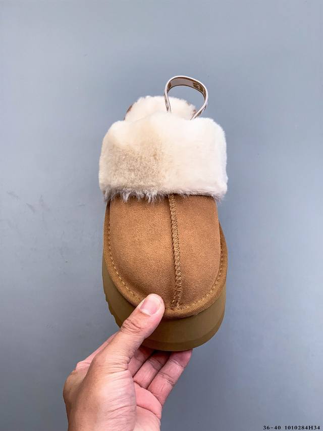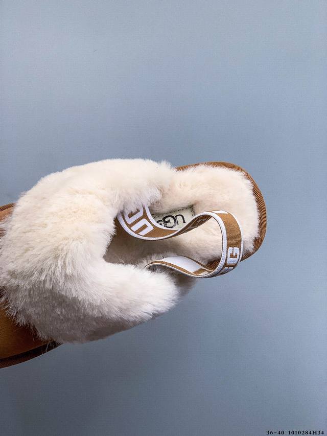 / 方克特厚底包头拖鞋Ugg 秋季休闲便鞋松紧带舒适毛毛拖鞋 1010284H34
