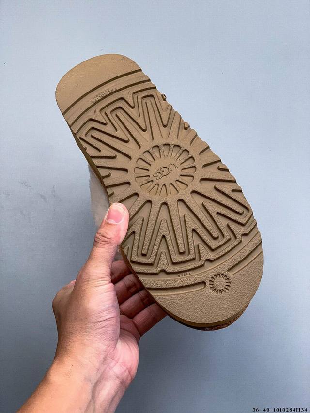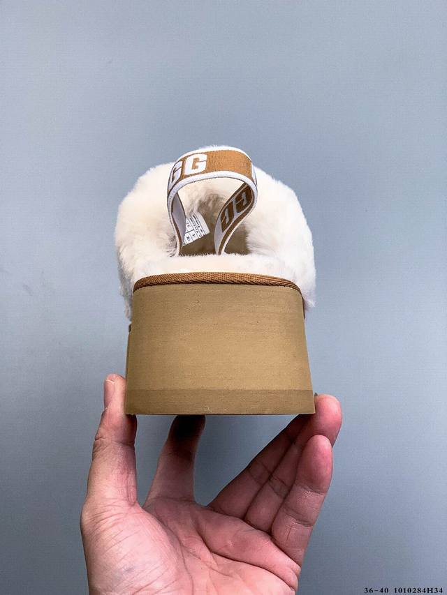 方克特厚底包头拖鞋Ugg 秋季休闲便鞋松紧带舒适毛毛拖鞋 1010284H34