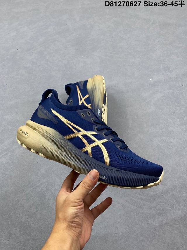 / 瑟亚士Asics Gel-Kayano 31 亚卡诺31低代帮专业有氧轻超量休闲动运全能慢鞋跑。标原半码制#全新原装数据开人发体工学体一式轻贾质卡双编层鞋织面,
