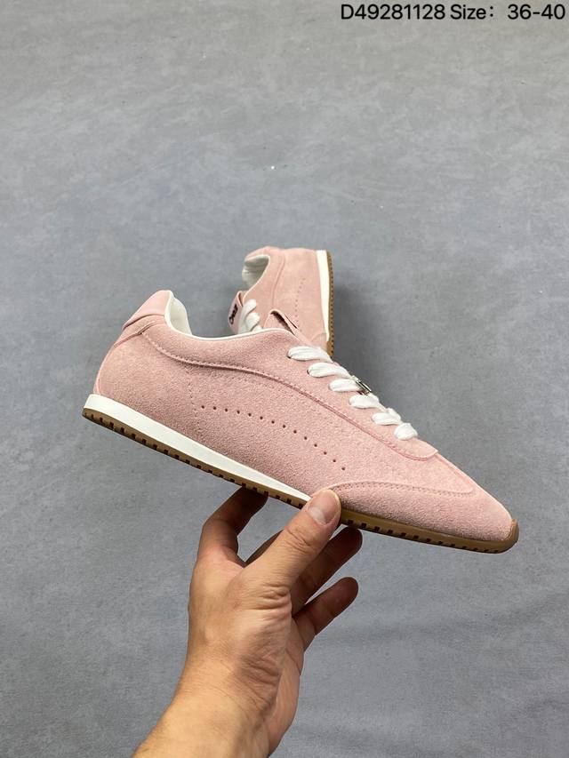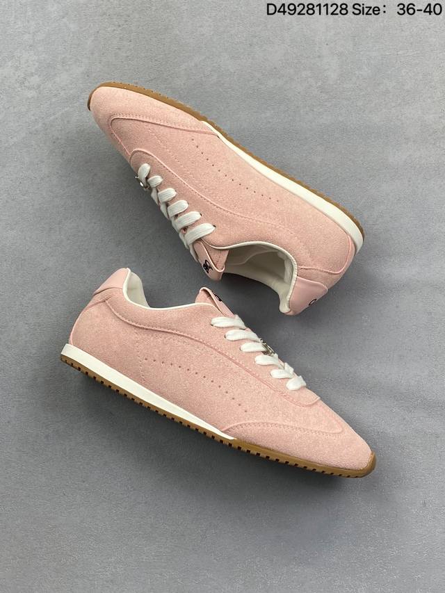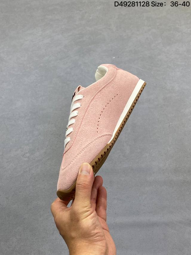 男女鞋真标半码制#升级原楦开发版型#采用猪巴革组合纤维革饰片鞋面材质#双层乳胶缓震鞋垫#外部橡胶防滑外底美国知名瑜伽品牌Alo Yoga Sunset Low Sneaker 日落系列低帮阿甘T头复古风德训薄底百搭休闲运动鞋“麂皮浅骨白生胶底”A0891U 0777 B1S1 DDD 尺码:36 36.5 37.5 38 38.5 39 40 40.5 41 42 42.5 43 44 45 DDD 编码:D49281128 DDD