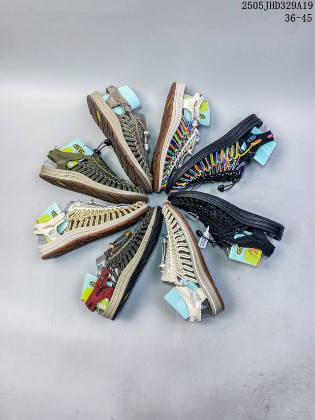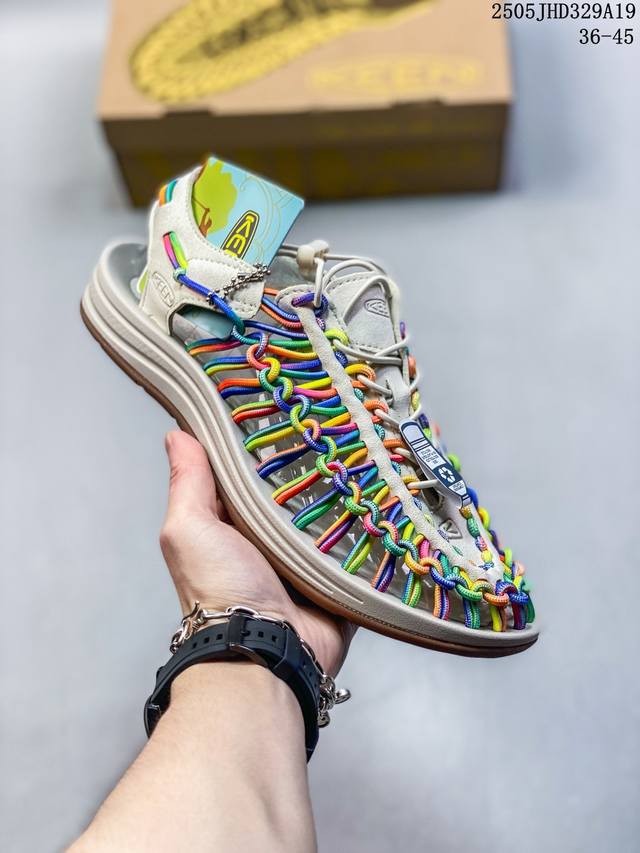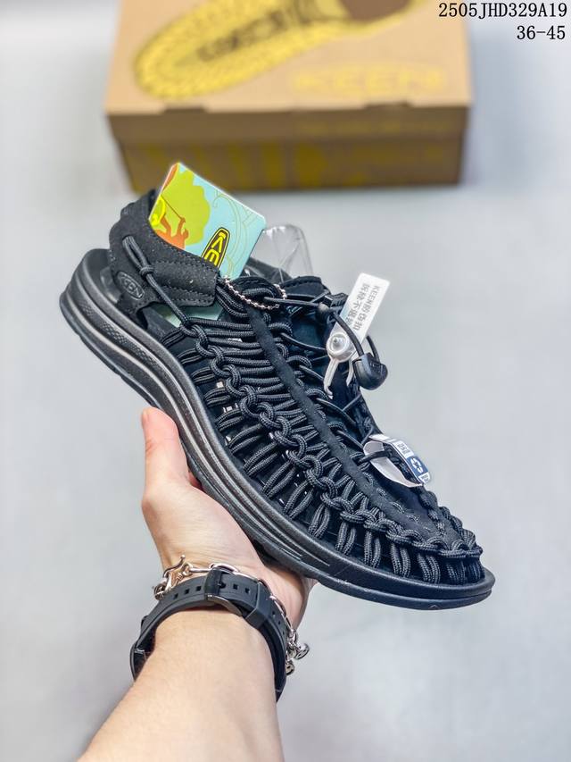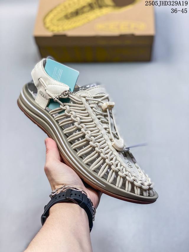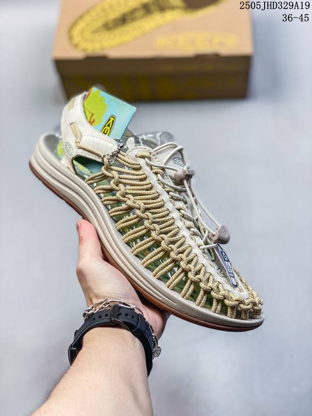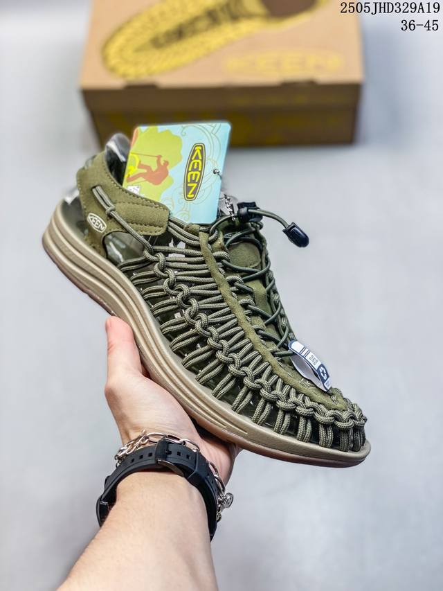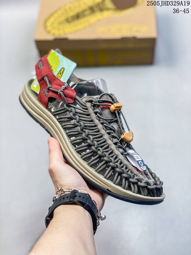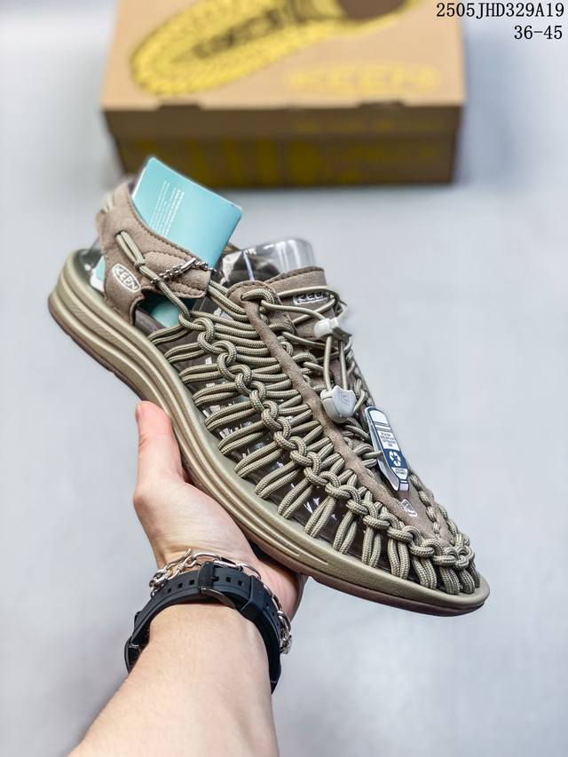 / 男女鞋采用进口机台编制两根尼龙绳组合正确反绒超纤革饰片鞋面 快干衬里环保材料人气户外休闲鞋品牌-科恩Keen Uneek Flat-M 平底编织弹力穿搭溯溪涉水