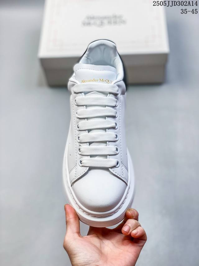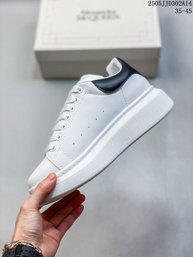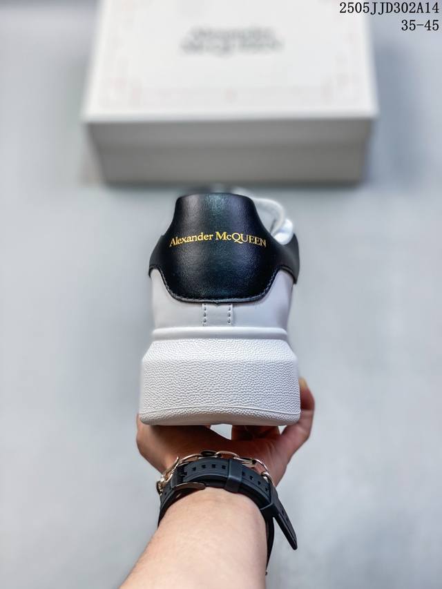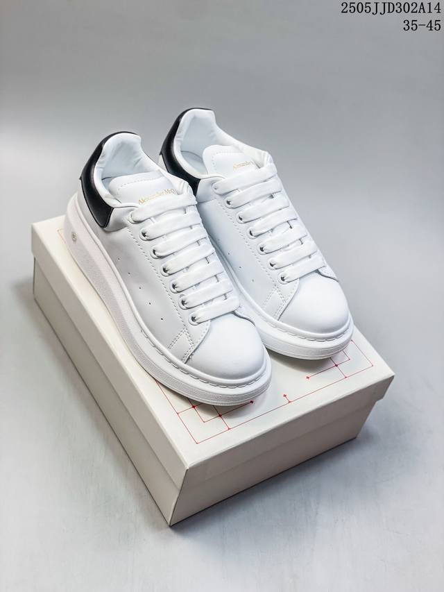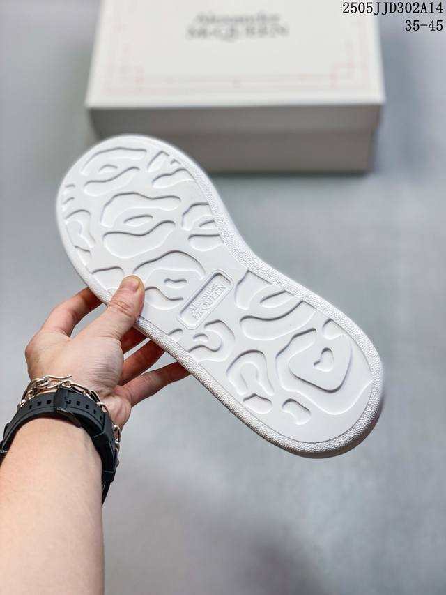 真标意大利高奢品牌Alexander Mcqueen亚历山大 麦昆 Sole Leather Sneakers低帮时装厚底休闲运动小白鞋