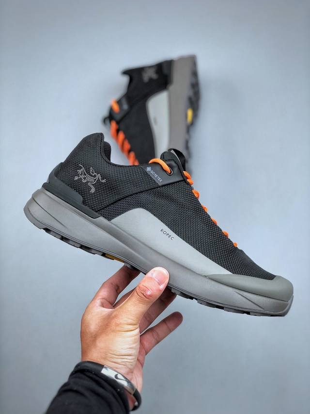 FFF 纯原套盒版 始祖鸟Arcteryx Kopec Gtx M 覆盖透气男越野跑鞋 DDD 正确后跟刺绣 完美细节版型 DDD 官方同步上架 适合技术路线单日徒步穿着 DDD Aeriosflgtx鞋受到长途野外跑步鞋的启发 适合在变化的地形上进行快速轻快的徒步旅行穿着,舒适而有支撑性,使您充满信心。该设计与脚部融为一体,可最大限度地减少摩擦,Gore-Tex保护膜网砂,采用Gore隐形适体 Invisiblefit 技术,更轻薄舒适。敏捷、稳定和技术路线上的自信源于Vibram Megagrip外底