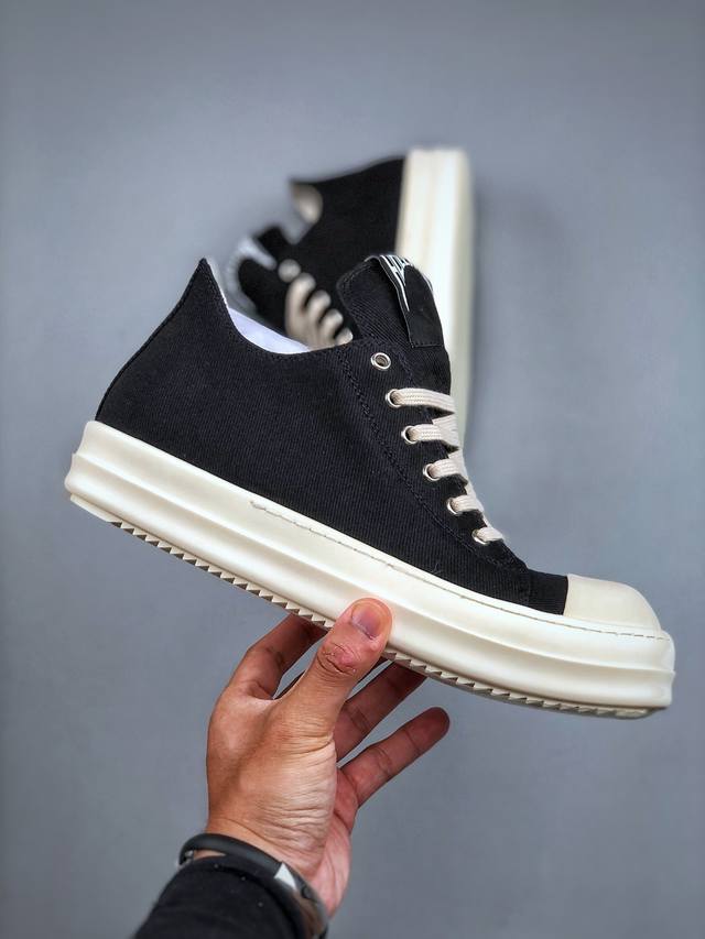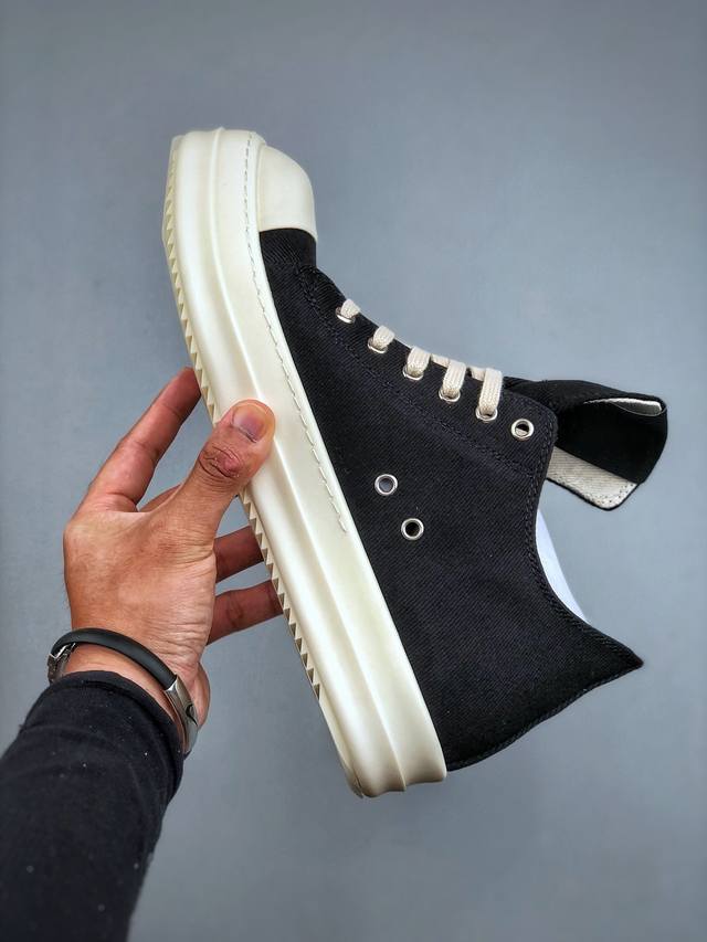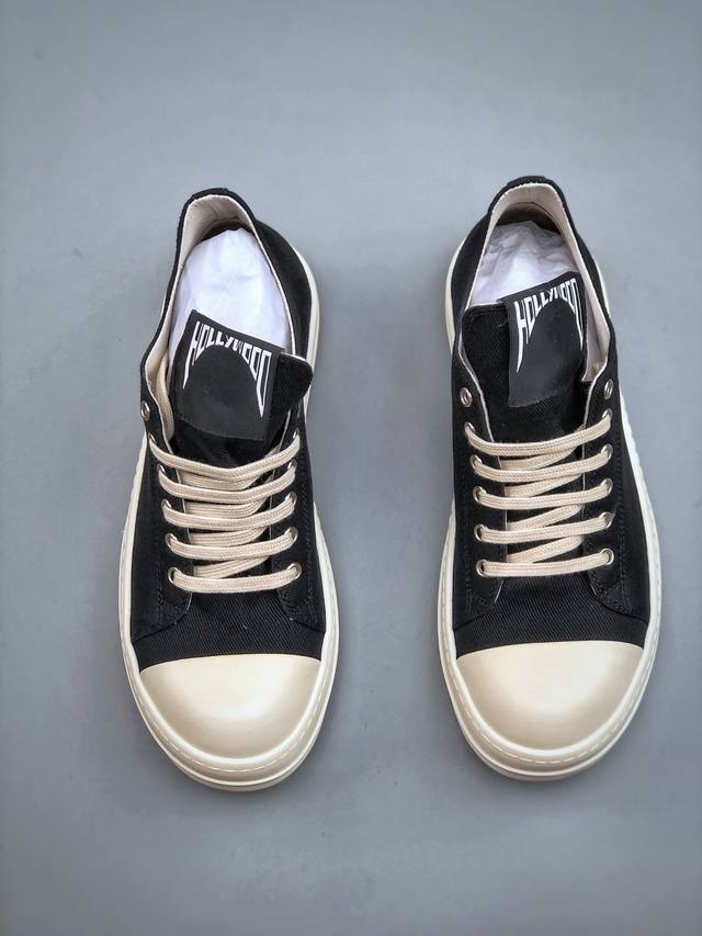 FFF 莞产G版,Rick Owens Drkshdw Hollywood 瑞克 欧文斯 DDD 款式 帆布款 低帮 长鞋舌款 黑色 DDD 面料 东莞原厂进口全新2025年新材质 高丝光轻绒感12盎司帆面 DDD 鞋带 鞋带采用水染定织法工艺,高密度之下,透出光泽感! DDD 鞋头 奶白色小牛皮,软糯,轻轻按压有牛皮细细的纹理质感! DDD 鞋底 Tpu大底奶香味!硬度、肤感一比一!鞋底Logo钢印清晰正确! DDD 鞋垫 整张牛皮鞋垫+Logo ,独家私人开模冲孔! DDD 尺码 :36 37 38