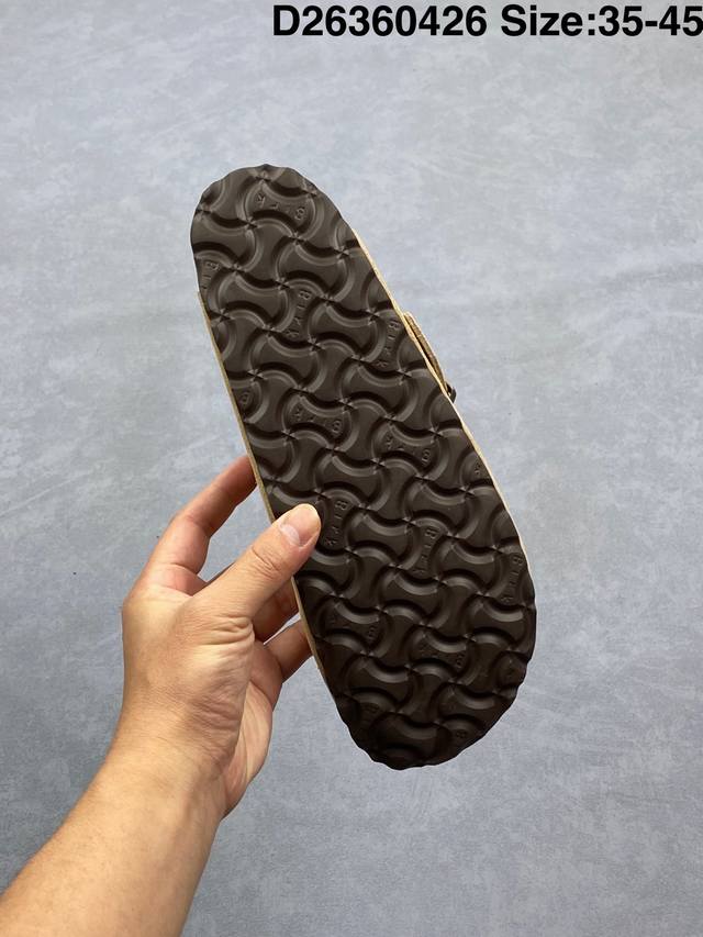 采用柔软牛皮绒面革里衬皮毛一体鞋面材质#中底鞋床搭载波状外形缓震软木橡胶#外置Eva轻量片装外底舒适又时髦,潮人都在穿德国百年知名鞋履品牌 勃肯Birkenst