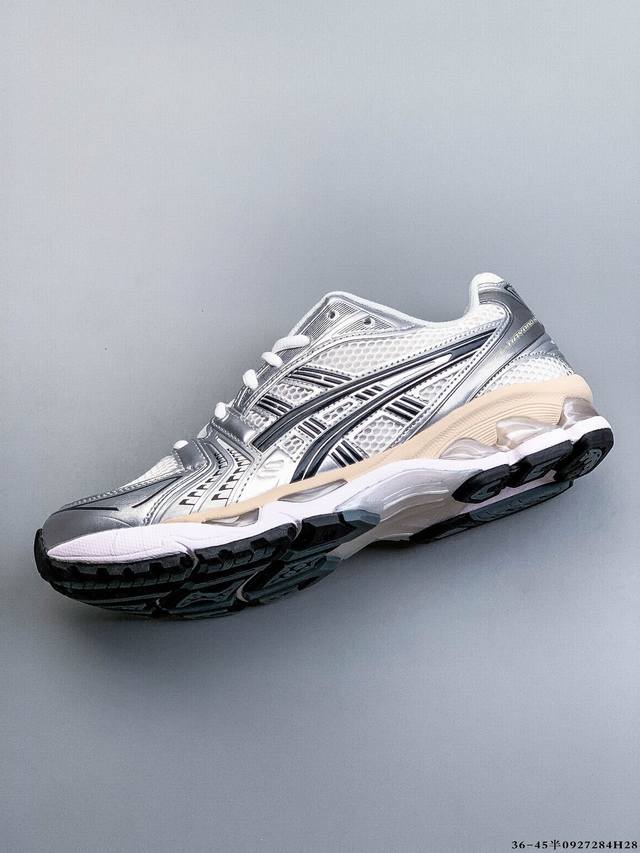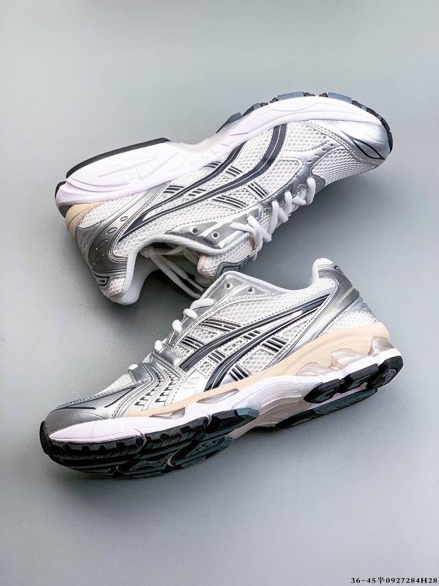 采用环保太空合成革配合透气网眼布鞋面材质#中底3D可视Gel缓震胶效果#升级Eva全新缓震中底部位科技组合耐磨橡胶外底片13年前经典首度回归,复刻魅力难挡!日本专业跑鞋品牌 亚瑟士 Asics Gel Kayano 14 系列轻量缓震休闲运动跑步鞋