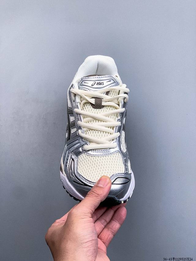 采用环保太空合成革配合透气网眼布鞋面材质#中底3D可视Gel缓震胶效果#升级Eva全新缓震中底部位科技组合耐磨橡胶外底片13年前经典首度回归,复刻魅力难挡!日本专业跑鞋品牌 亚瑟士 Asics Gel Kayano 14 系列轻量缓震休闲运动跑步鞋 DDD Asics Gel-Kayano 14 于2008 年在万众期待中横空出世,设计师 Hidenori Yamashita 以 Flash 一词为灵感,创造出未来感金属色鞋面,改造升级内在性能,由内而外全面革新,为 Gel-Kayano 家族传承及经典跑
