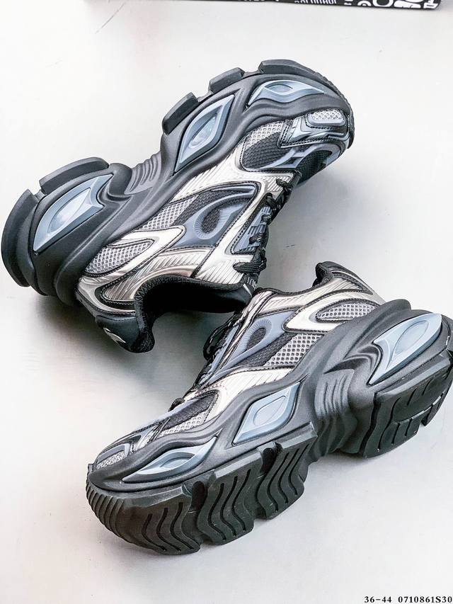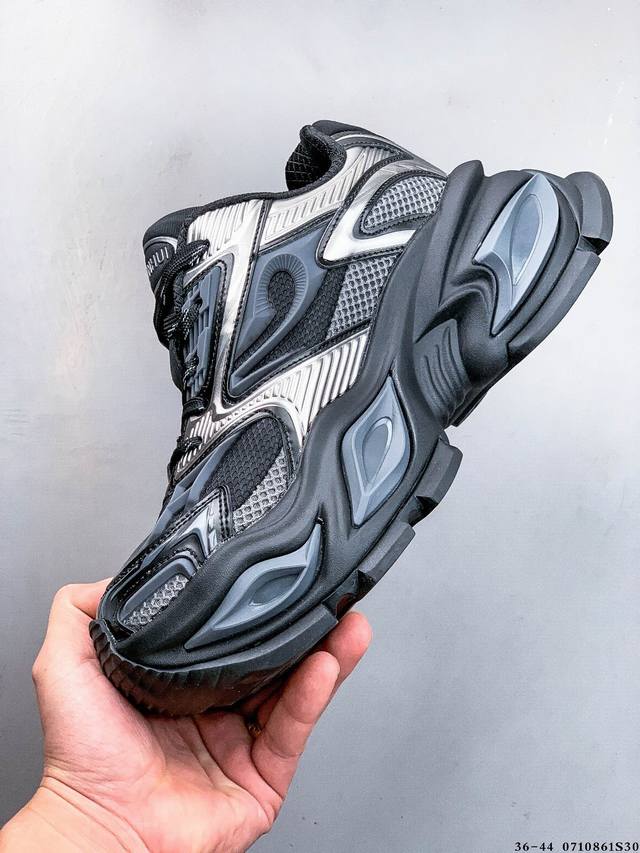 / 采用皮革拼接透气网布贴合材质鞋面,轻盈发泡橡胶鞋底Balunhui Fashion Sneaker系列低帮复古老爹风系带百搭休闲运动慢跑鞋 0710861S30