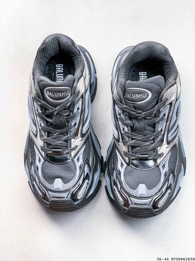 采用皮革拼接透气网布贴合材质鞋面,轻盈发泡橡胶鞋底Balunhui Fashion Sneaker系列低帮复古老爹风系带百搭休闲运动慢跑鞋
