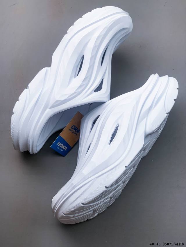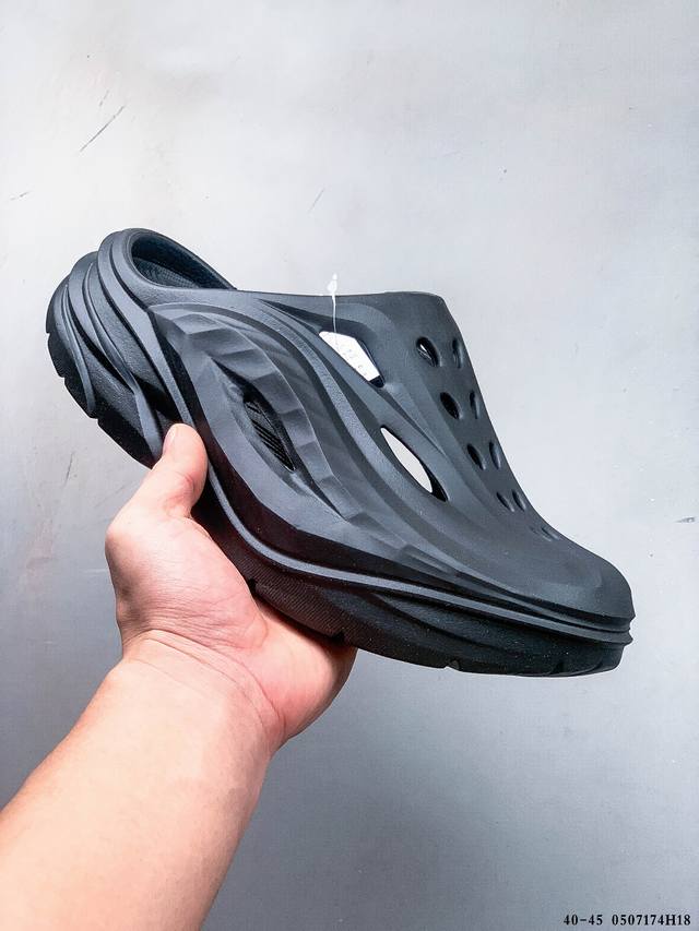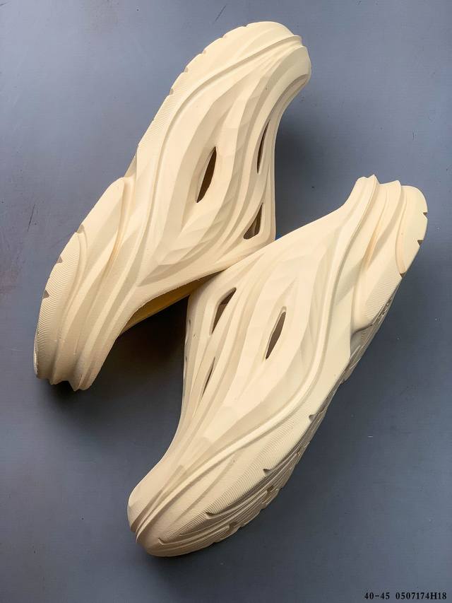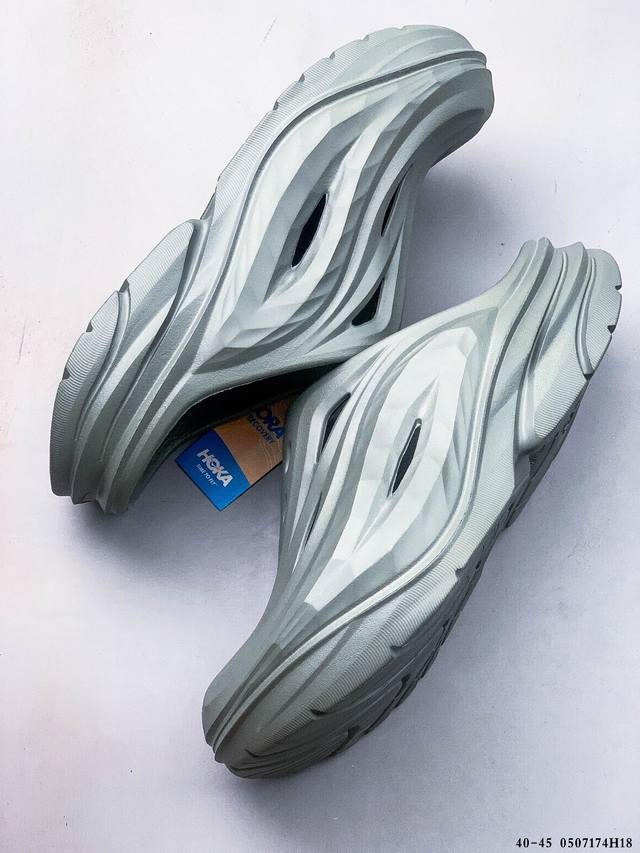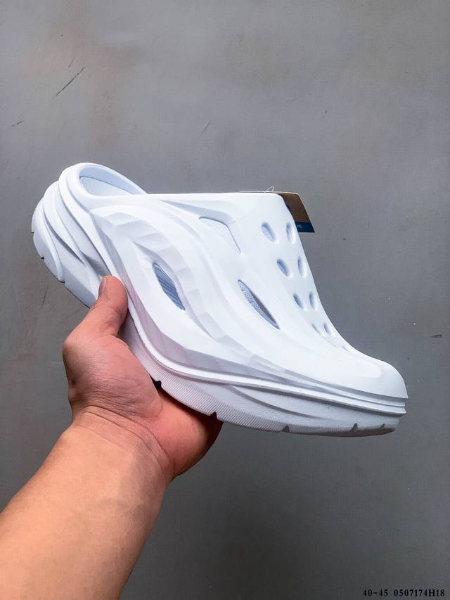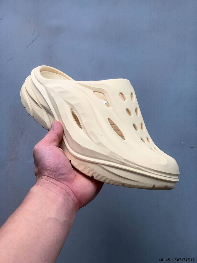 Hoka One One夏奥拉Mule户外缓震拖鞋。流线型融合极简美学,包头鞋面,对脚掌有更好的包裹性,也满足防碰撞的功能性。鞋面多处开孔的气流通道,有助于空气流通,快速散热。双密度的Hoka几何中底,上层提供脚踩云朵般的柔软与舒适,下层有良好的耐磨和抓地性能,嵌入式鞋床提供稳定性、支撑性和保护性。