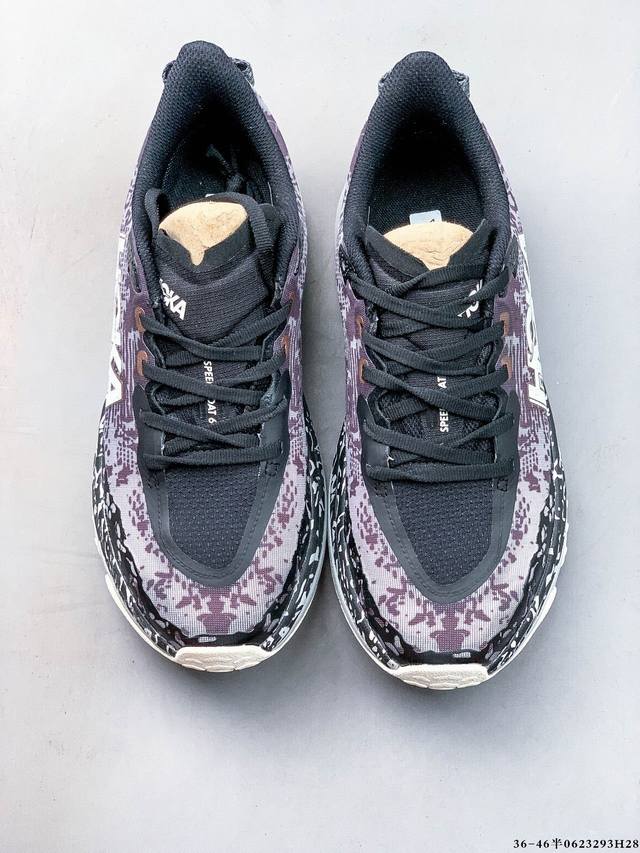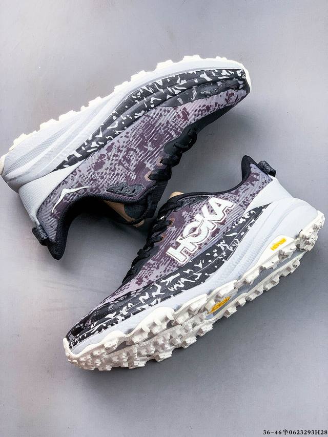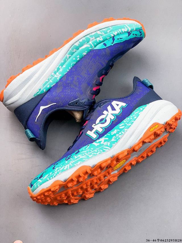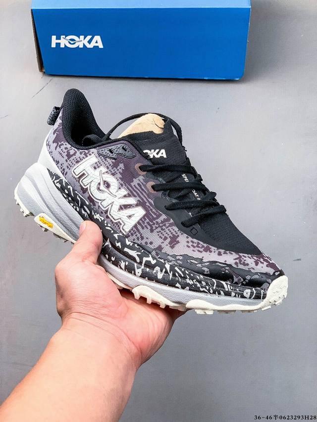 Hoka One One Speedgoat 6 户外越野跑步鞋 飞速羚羊 6 系列 新一代工程网纱鞋面 在确保鞋面稳定性的同时减少了固定胶条的使用 鞋面更轻盈、透气、舒适 可回收材料 为环保做出贡献 延伸后跟拉攀 方便快速穿脱 速度型滚动平衡技术 在崎岖的路面上 为平稳顺畅的步伐