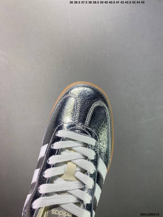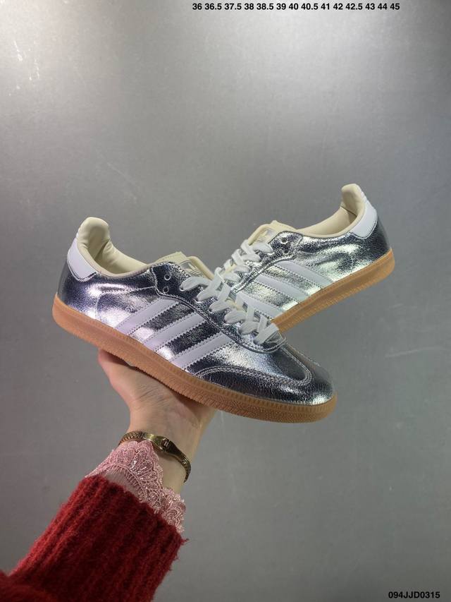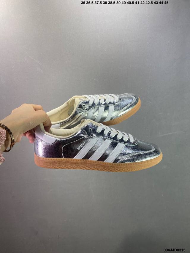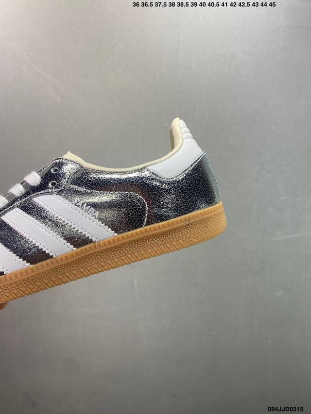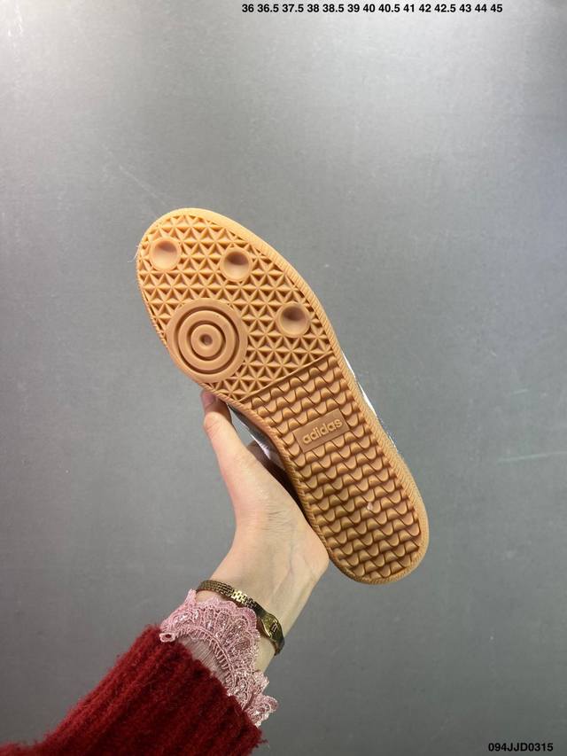 adidas 近70年的经典Samba Og 原装全头层制作超软头层真皮杜绝劣质仿皮 修长的鞋楦,略微尖尖的鞋头,翻毛皮的鞋头拼接,这些我们都看得到的元素正是Samba的设计灵魂