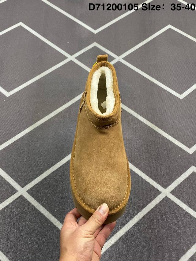 羊毛一体迷你短靴 优选翻毛皮鞋面 手感细腻 羊毛内里 舒适亲肤 茸暖舒适 让你无惧寒冷天气 耐磨一体式泡棉鞋套 Eva软弹厚底增高大底 代购级别 冬日必备雪地靴单品