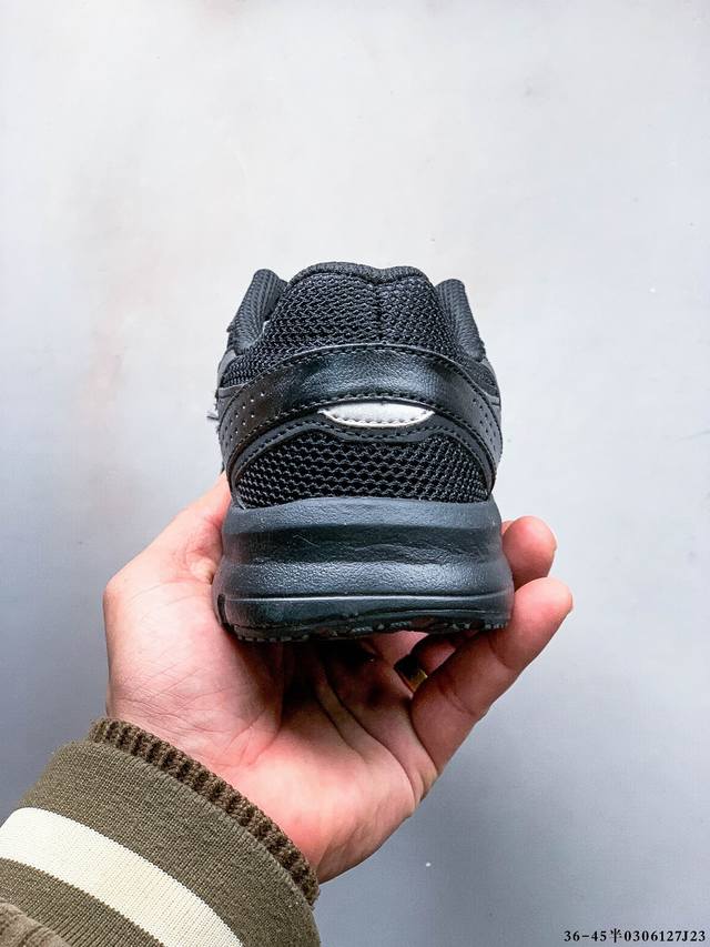 鞋款面料使用网布增加透气性,鞋底纹路以越野跑鞋为灵感概念,增添潮流感。外观上也增加了科技感的时尚味道,简洁的鞋面设计,轻量透气,提供了良好的舒适性和穿着感受。