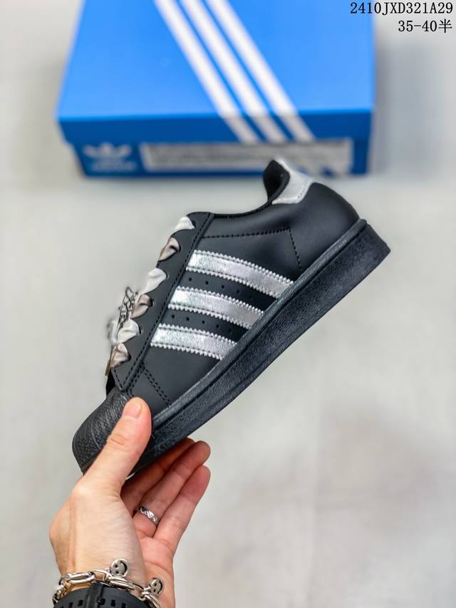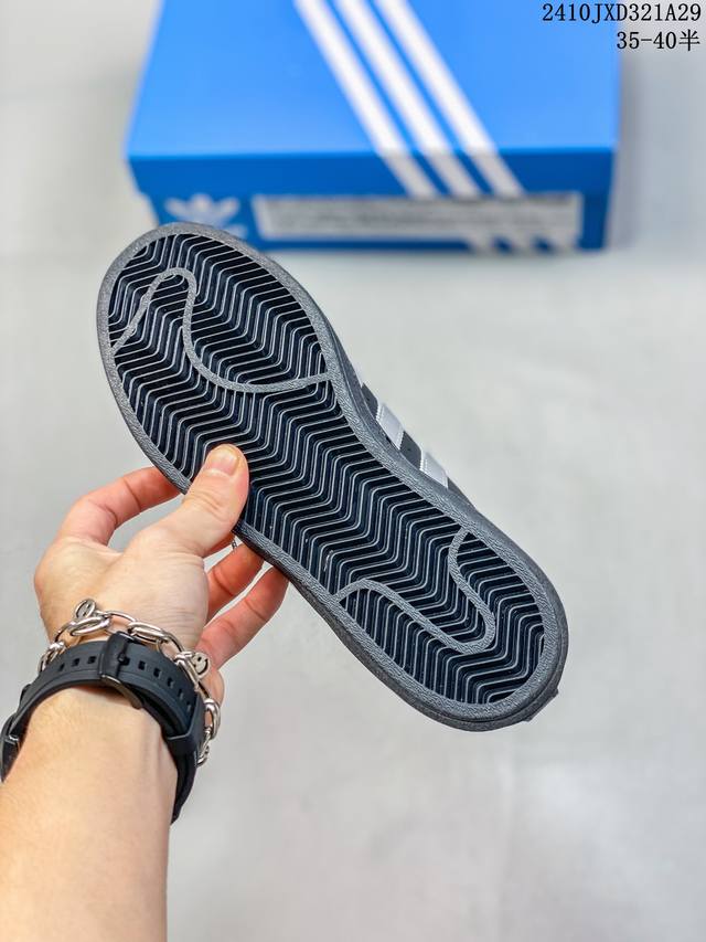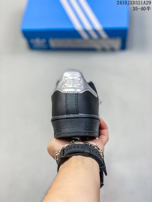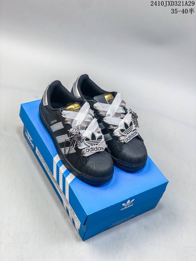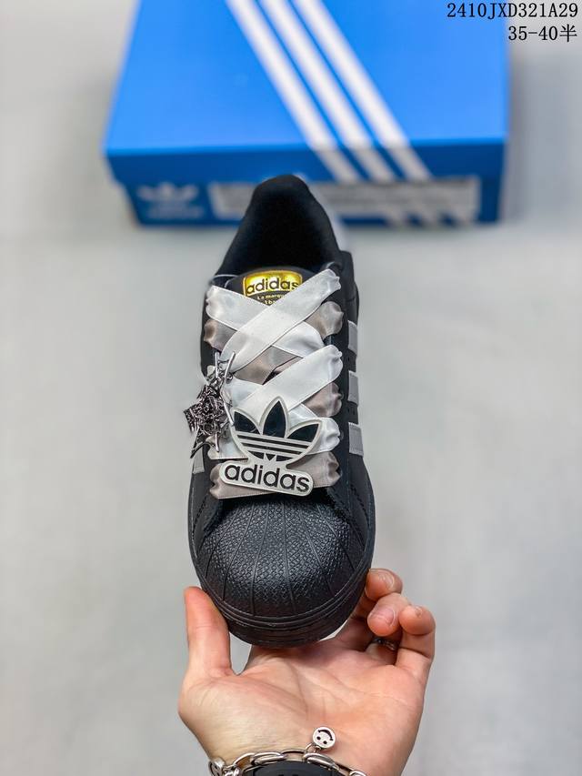 公司级Ad Originals Superstar 经典复古贝壳头板鞋 Eg4959 诞生于1969年 是第一双将全皮面鞋 身与橡胶鞋头结合在一起的低帮篮球鞋 Superstar最开始 是作为高帮篮球鞋Pro Model的低帮版本而出现的 但因为其独特和醒目的橡胶鞋头造型而让大家熟知 被大家形象地称为”Shelltoe“贝壳头 在70年代的美国职业篮球场上 接近3/4的Nba球员都将这双Superstar作为场上用鞋 80年代之后 经过不断的改良和发展 Superstar逐渐成为横跨时装、音乐