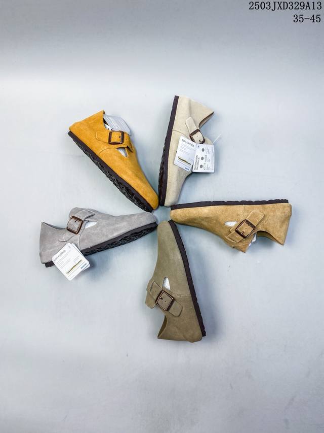 Birkenstock 勃肯 Arizona系列 牛皮绒面革鞋 采用牛皮绒面革质地柔软,色泽柔和,半包外观保护脚趾,人体工学设计:分散脚部压力,保护脚踝