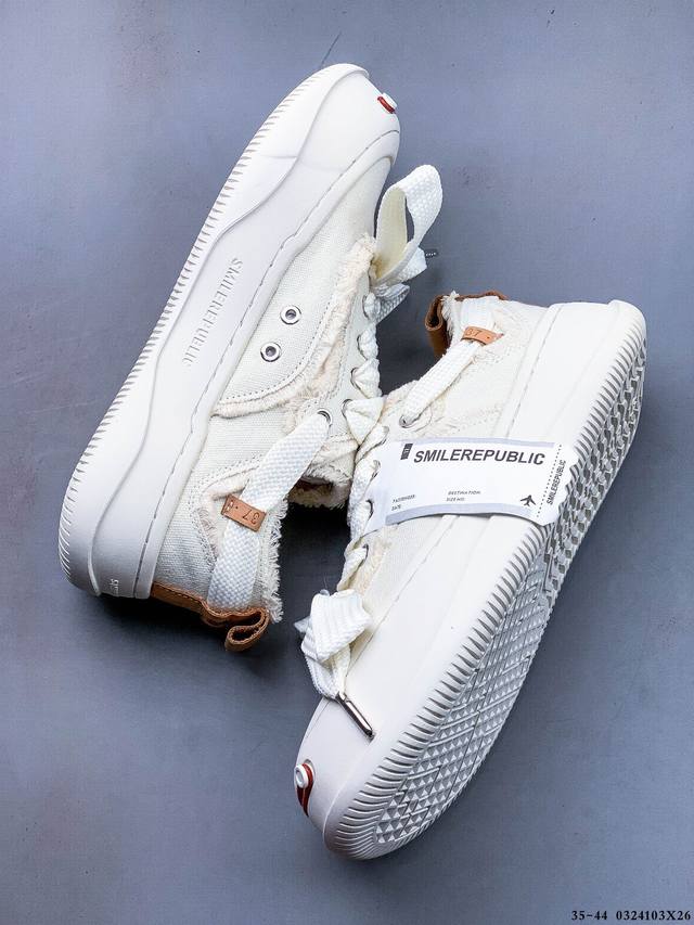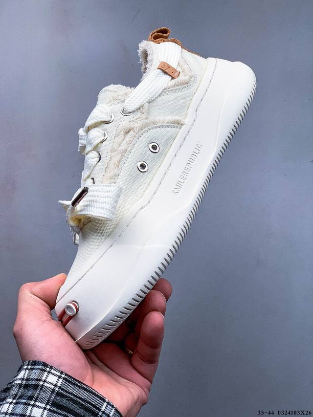 / 180 smilerepublic 厚底开口笑帆布鞋系列 檀健次,李晨,徐璐,程潇同款,以“Smile”为灵感来源 主打柔软的帆布设计 有裁切的羊毛流苏与独特编