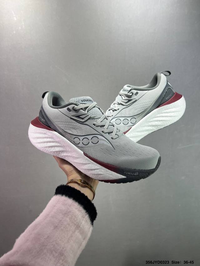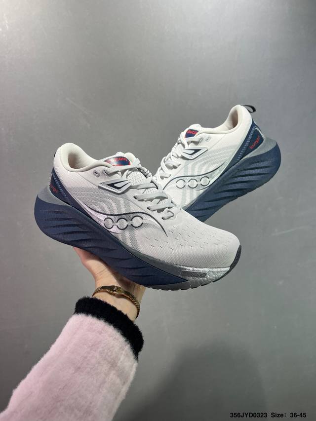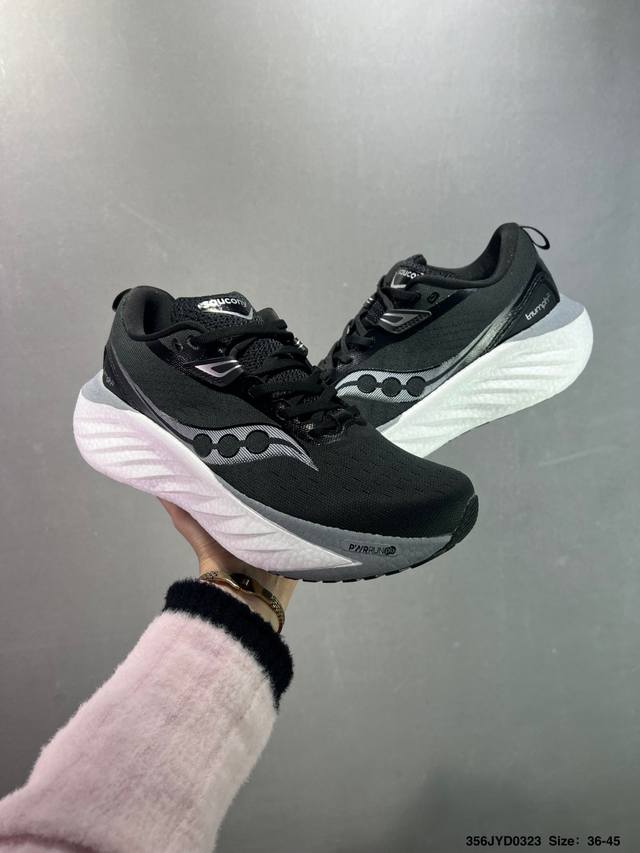 公司级 Saucony Triumph 索康尼胜利旗舰级缓震型跑鞋 性能相比前几代再升级:鞋面采用全新升级的工学网设计 贴合脚部更透气 中底部分使用最新的Pwrrun+材质 搭配Pwrrun+鞋垫使中底的大幅加厚 10Mm坡差进一步提供缓震、回弹性能 内底则采用了Formfit动态适应系统 动态契合脚型 提升包裹性和舒适性 提供更卓越的动态回馈体验 Xt-900橡胶大底 可提供良好的抓地力和较强抗磨性能 Size:35.5 36 36.5 37.5 38 38.5 39 40 40.5 41 42