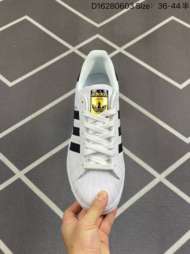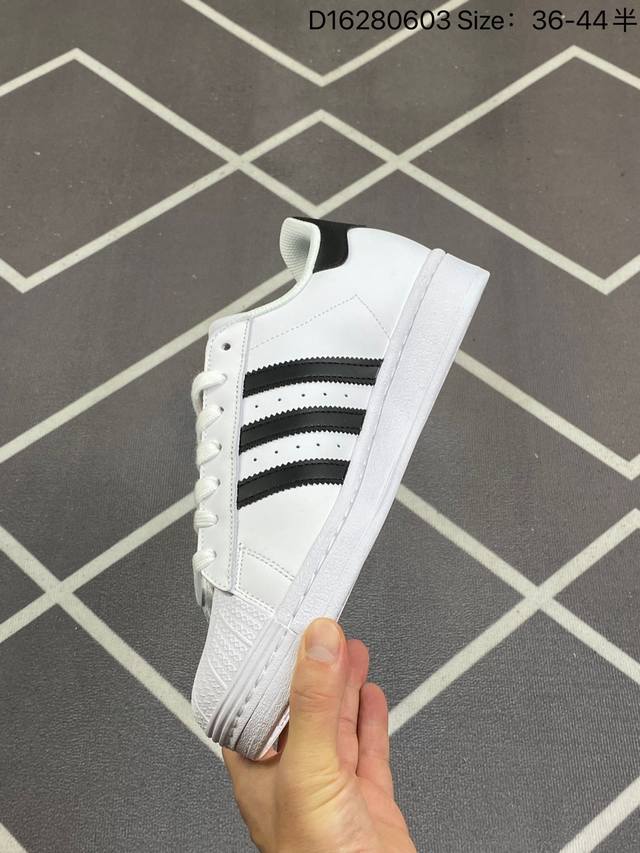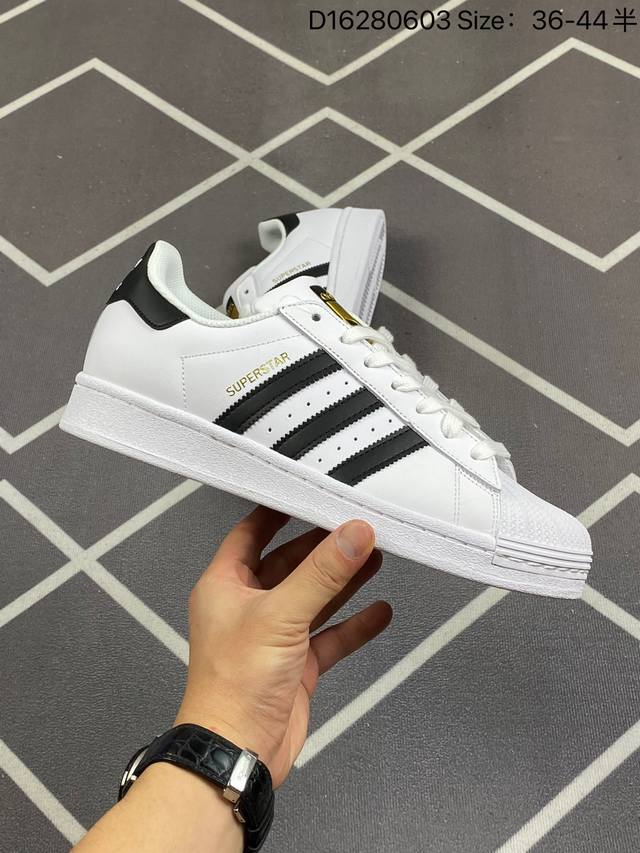 Ad Originals Superstar 经典贝壳头休闲板鞋 白黑 Eg4958 俄罗斯出口外贸订单 产量过剩流放市场 市面最完美的贝壳头版型 2024全新细节 注意区分旧版 随意对比市面 知名大厂出品 正常个位数利润的单价 百分百全新货品 零氧化发霉 给足利润空间操作 独家控货 平台正单 全套原纸板楦头开发 每道工序同步公司流程 确保原汁原味 完美呈现原鞋版型 原厂高频磨具加持 精准内部资源对接 Logo字体百分百还原 全鞋电脑针车 Logo针车间距针数原版一致 皮料切割冲裁零瑕疵 原鞋