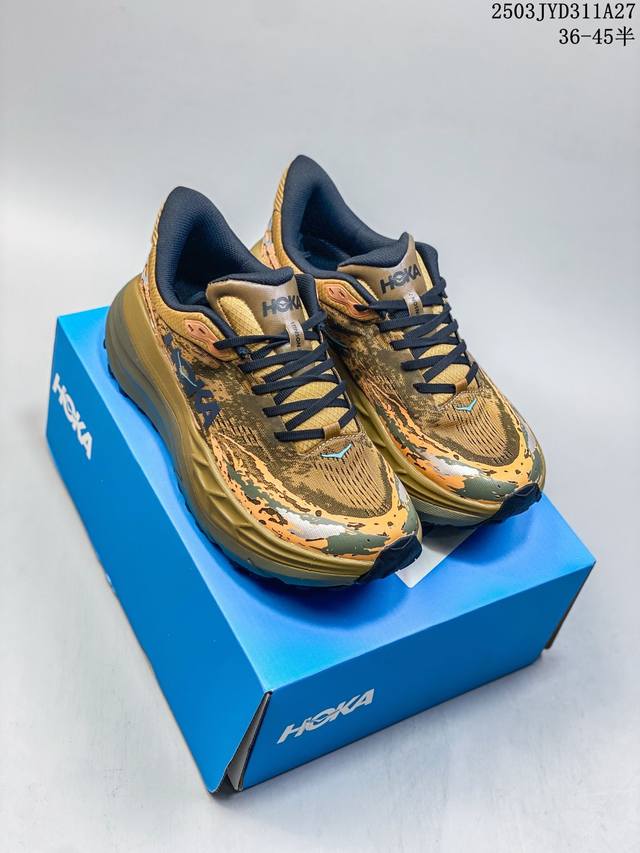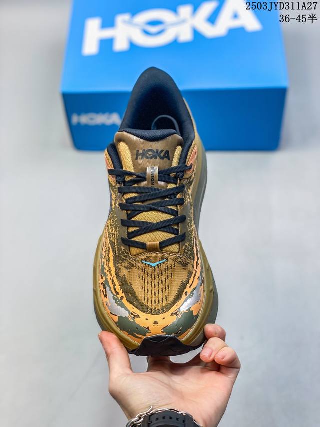 hoka Stinson7 这个品牌来自于新西兰的毛利语,Hoka表示大地,One One表示飞越,连起来就是飞越地平线,One One不是读作“万万”,正确读法是“欧尼欧尼”。 Hoka在超厚中底方面的积累,让它跑在了其他厂商的前面,推出的跑鞋以缓震和轻量的优势,得到,众多跑者的青睐