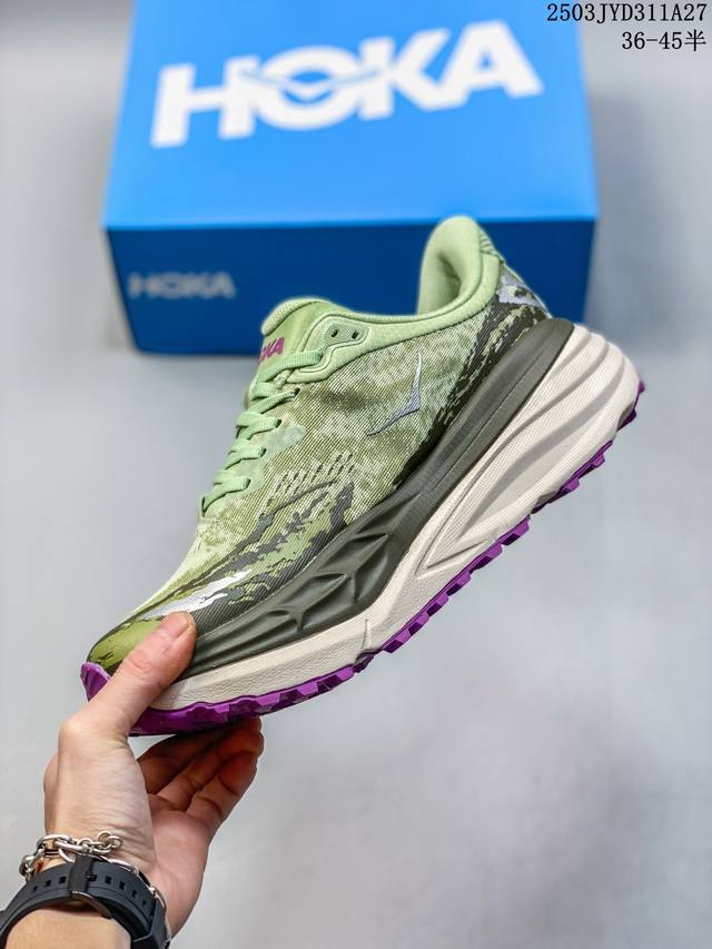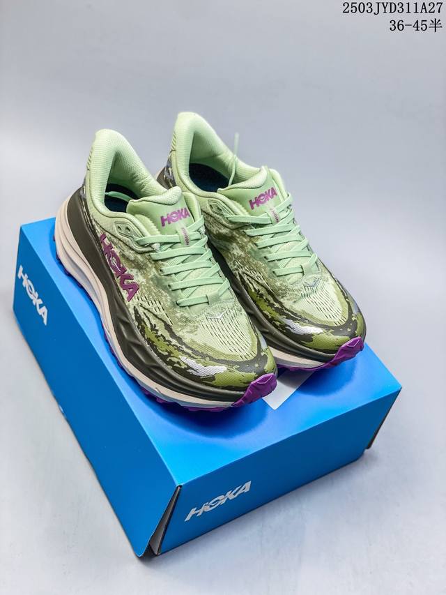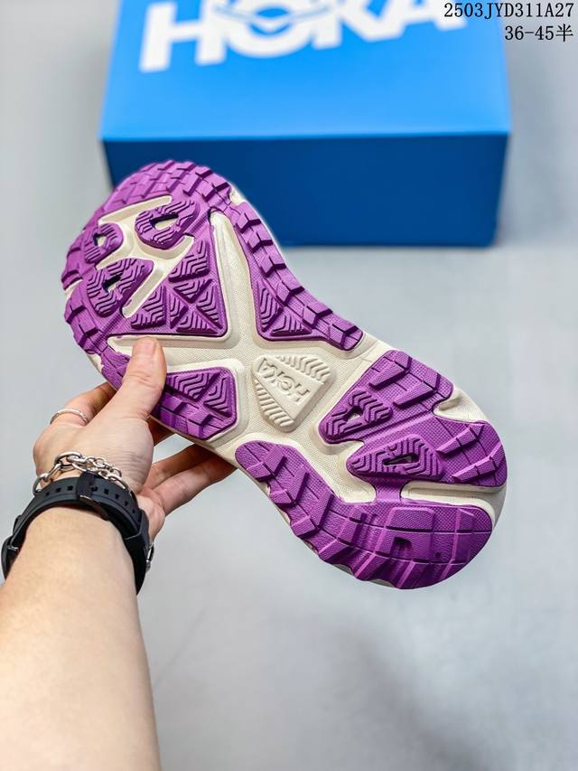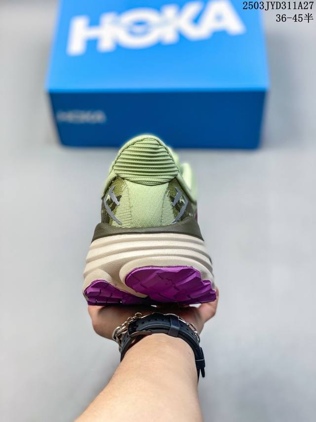 hoka Stinson7 这个品牌来自于新西兰的毛利语,Hoka表示大地,One One表示飞越,连起来就是飞越地平线,One One不是读作“万万”,正确读法是“欧尼欧尼”。 Hoka在超厚中底方面的积累,让它跑在了其他厂商的前面,推出的跑鞋以缓震和轻量的优势,得到,众多跑者的青睐