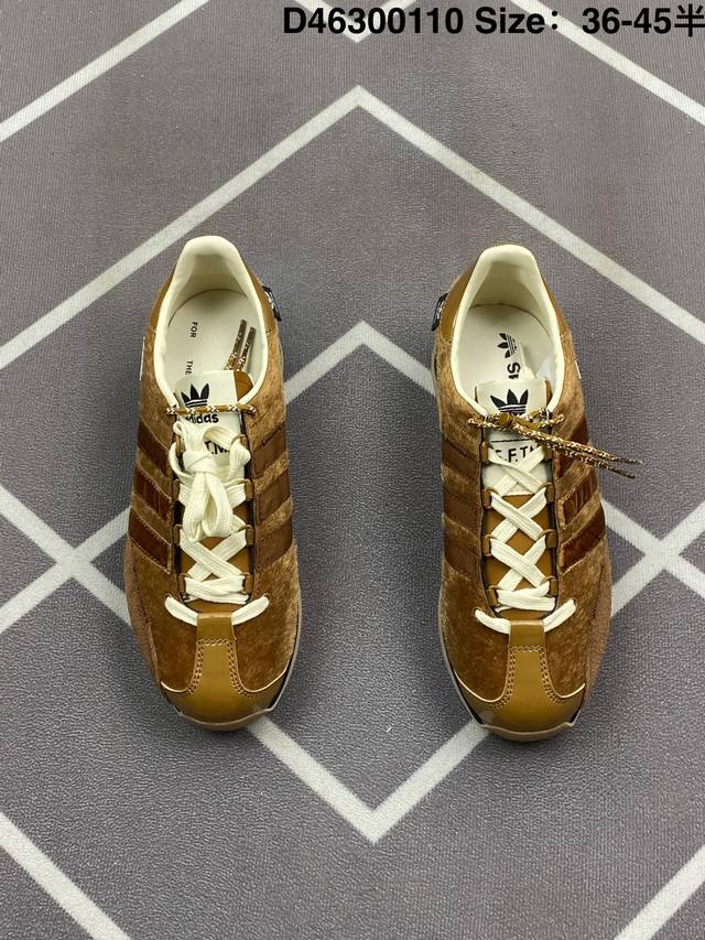 Song For The Mute Xadidas Originals Country Og 舒适百搭 防滑耐磨 低帮 生活休闲鞋 男女同款 黑色 简约大方的造型设计,给人以随性休闲的时尚格调,穿着舒适轻便,运动灵活自如,满足日常个性穿搭。独家原版原盒 原底原料 开模打造 原厂织唛鞋标 高精密准度 原楦原纸板开发 匹配原版98%以上 后跟垫棉独家呈现 反口里弧度正确 原厂鞋垫 背胶 后跟电绣针数 与正品一致 原厂皮料 原厂车缝线 质感无敌 皮料切割干净 无任何毛边 清洁度细节完美