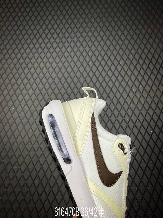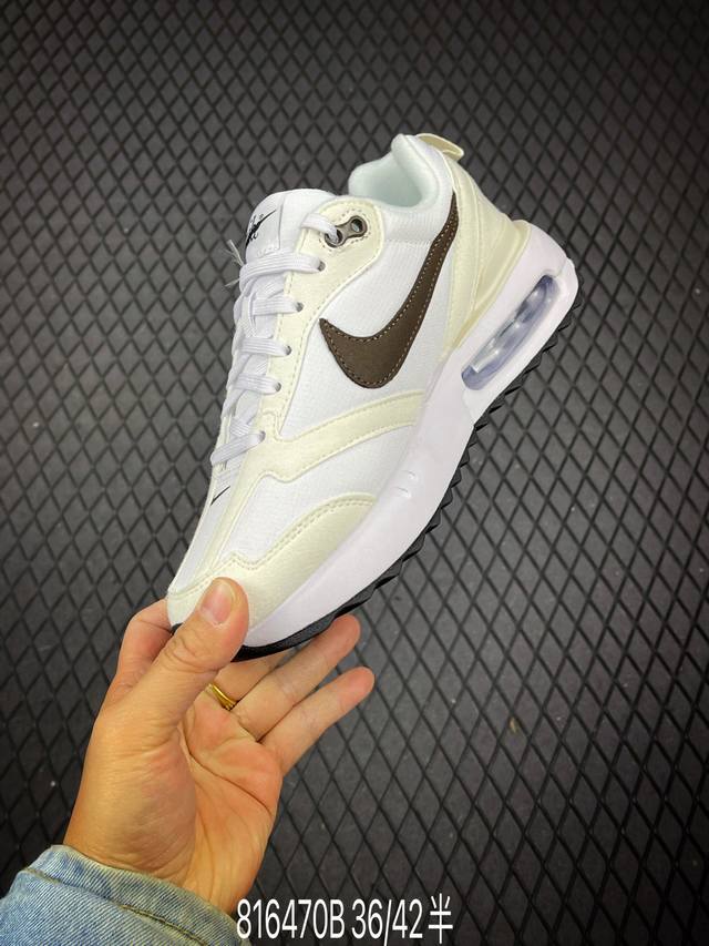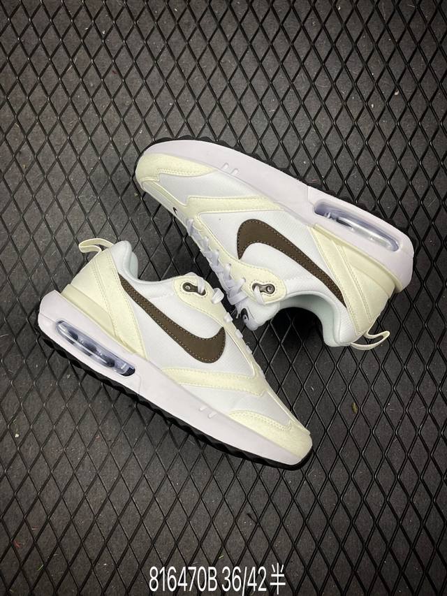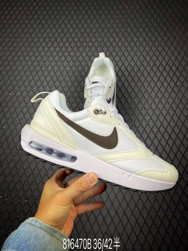 nk Air Max Dawn 全新缓震气垫跑鞋 Dc4068-102 #鞋款带来新的外底和鞋帮额外尺寸为鞋子的耐久设计线条增添了新能量。从配色上彰显出浓厚的复古气质。最大的亮点当属鞋型设计上加入结构元素,汲取1984年诞生的Airtrain 等经典鞋型为灵感,剪裁别出心裁。同时鞋面、侧身大面积使用尼龙材质,带来轻量化效果的同时增强透气性。最后便是中底更厚,增高效果更明显。 尺码:36-42(半)