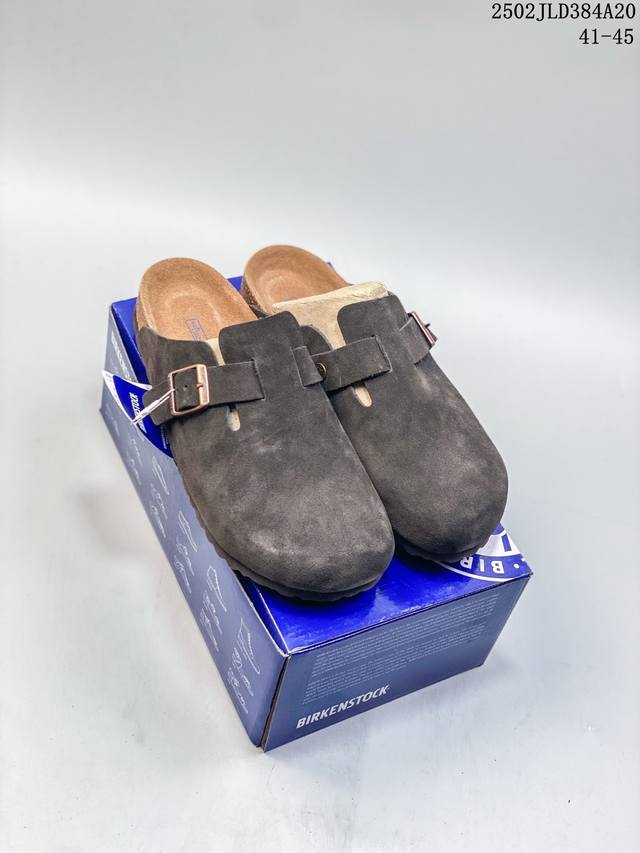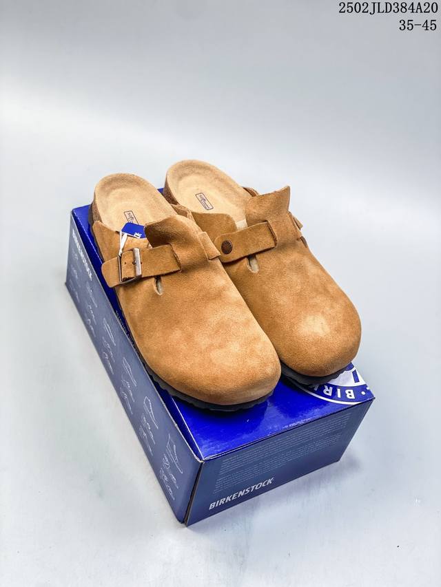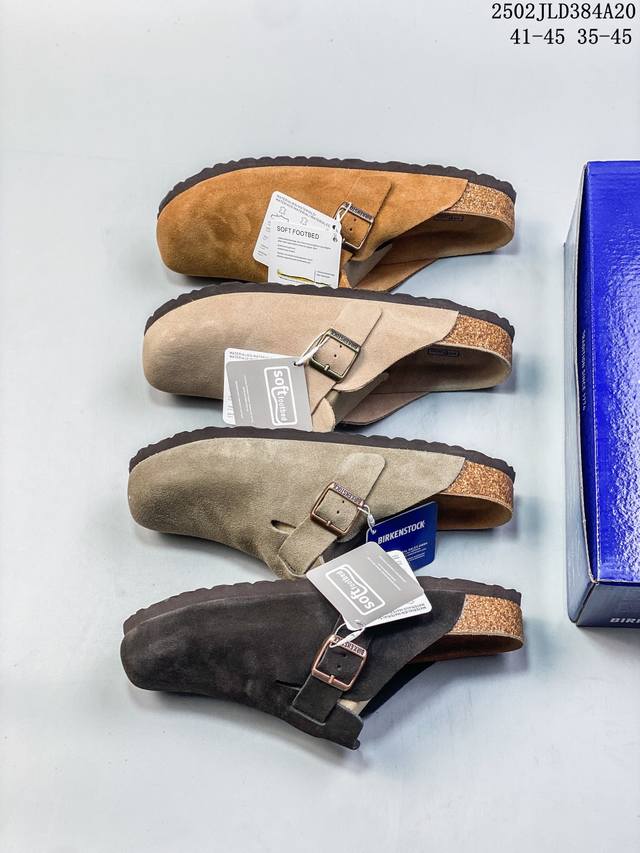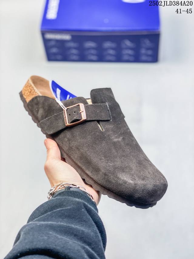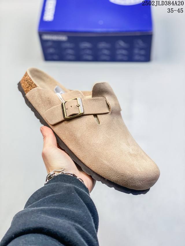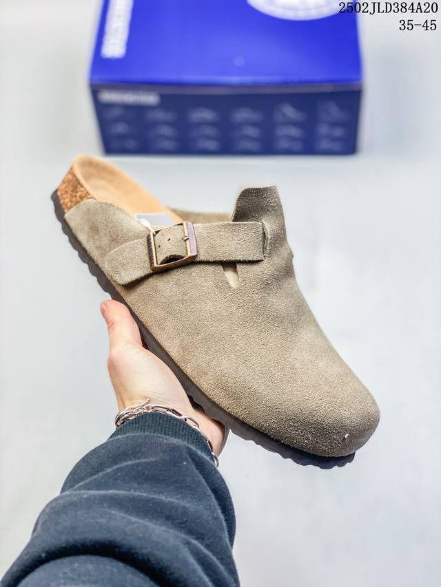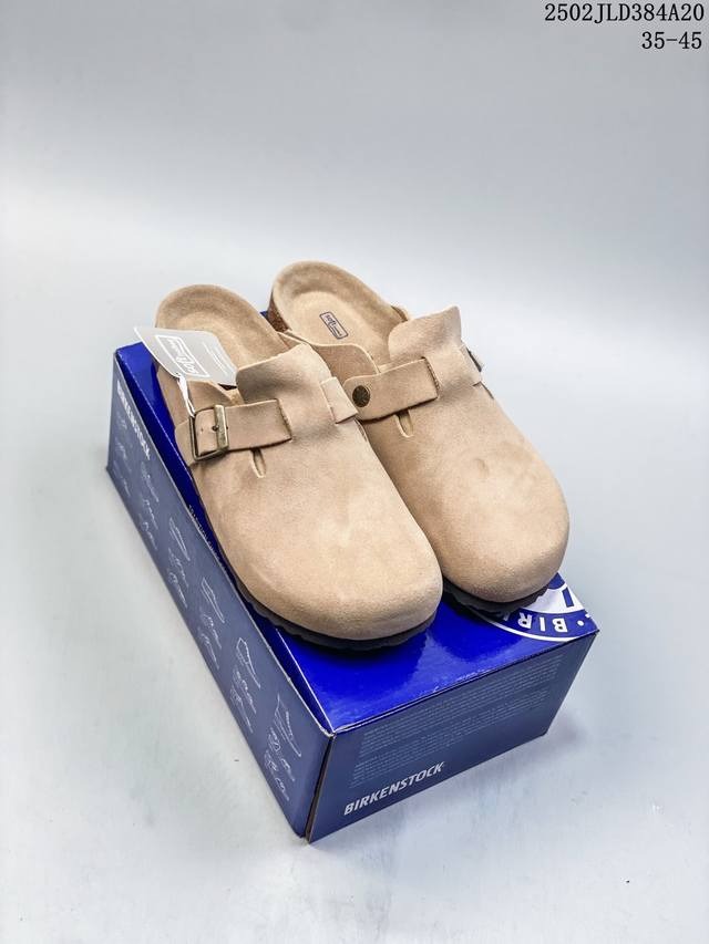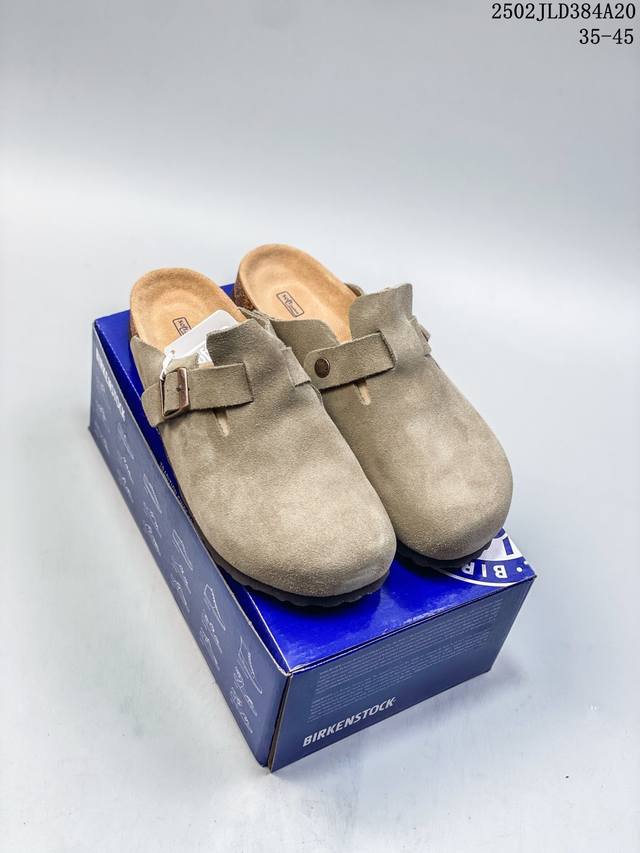 经典品质 德国勃肯男女款牛皮绒面革软底Boston包头拖鞋