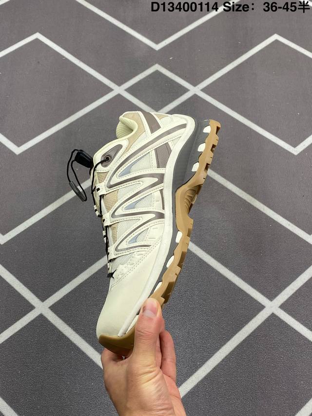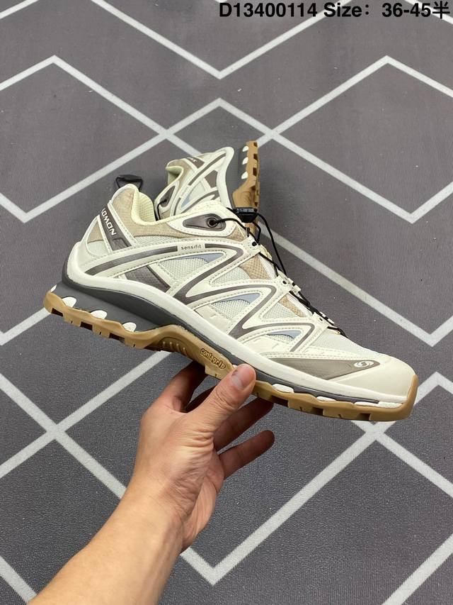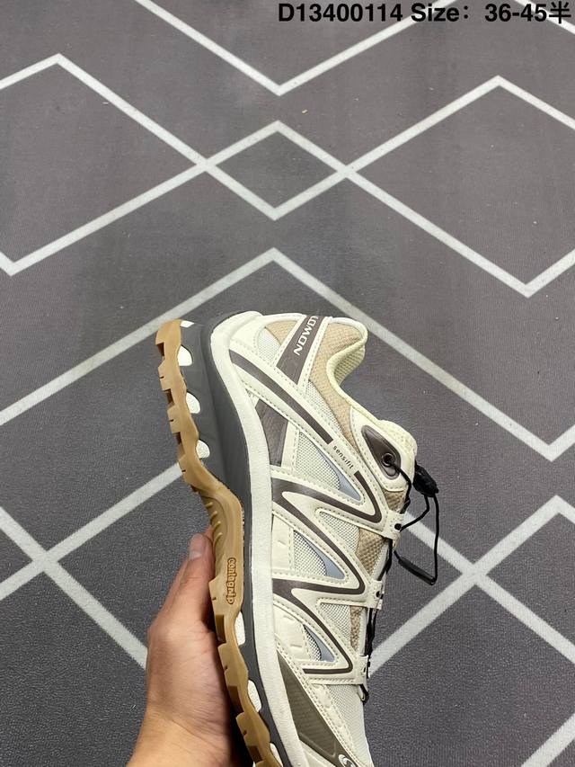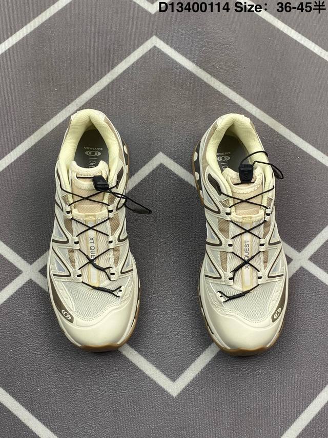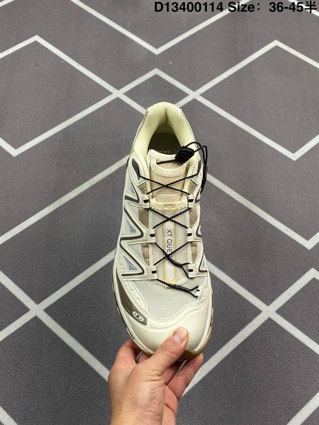 Salomon Xt-Quest Adv ” 3411Beige “ 萨洛蒙 探索者系列户外越野跑鞋 鞋面采用Sensifit贴合技术 全方位贴合包裹脚型 鞋跟部鞋底牵引设计 提供强大的抓地性能 更适应野外崎岖不平的道路 其3D Advanced Chassis底盘 材料轻量大化 钉齿设计更具稳定性、防护性 鞋底易磨损区运用Contagrip高耐磨材料 应对城市硬质路面长距离跑考验