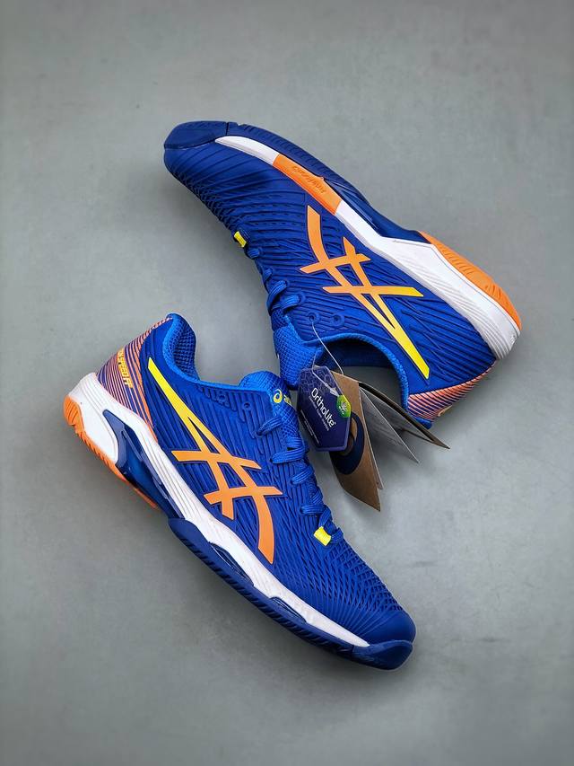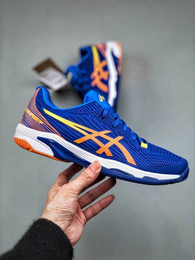 320支持放店 Asics Solution Speed Ff 2 蓝黄 亚瑟士轻量速度型网球鞋 Dynawrap 技术可提升稳定性 Flytefoam 科技打造轻量缓冲组件 Flytefoam Propel 技术鞋垫可提升吸震与回弹效果 Twisstrus 技术可提升速度与变向奔跑动作Asicsgrip 科技可提升在球场上的抓地力 后足 Gel 缓冲科技可提供出色的避震效果Ahar 橡胶可提升耐用性 货号:1041A391-960 尺码:39-45(半)
