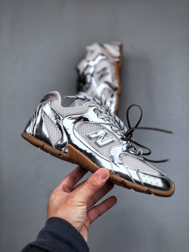 G027代购级别Miumiu&Nb联名款新色上新 美拉德配色德训鞋运动鞋Miumiu&Nb530最新款新色上新!特别Piu亮的银色渡边设计!经典的网面拼接皮面设计,上脚舒适轻便!一如既往的还原原版大底!三色上新!其中感觉银色最漂亮!谁能不爱亮闪闪呢!很适合春夏哦!透气孔设计不怕闷脚出汗哦!!