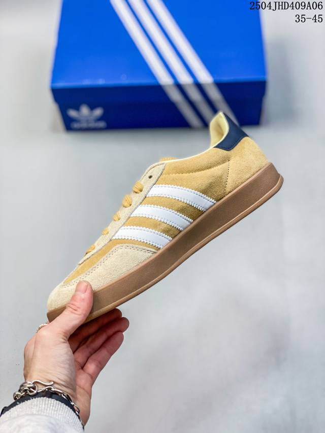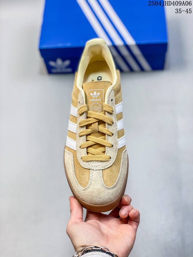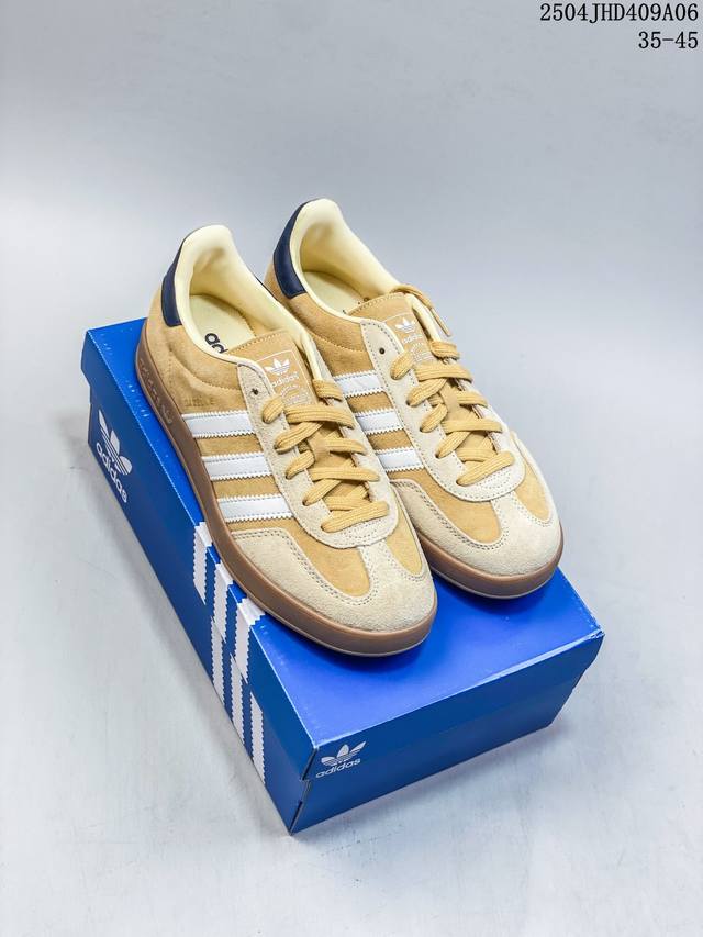 Ad Gazelle Indoor Trainers 羚羊内训系列低帮复古百搭休闲运动德训风板鞋 Ji3523 90年代经典的复刻版!自60年代以足球训练鞋面世以来,Gazelle就以其经典设计席卷全球。1991年版本的复刻,再造经典Gazelle。采用皮革打造,搭配浊色细节,让这款经典更加简约。尺码:36 36 37 38 38 39 40 40 41 42 42 43 44 44 45