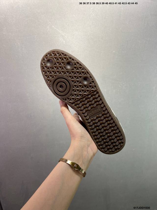 Ad Original Samba Og 复古经典轻便板鞋 Kk2239 口碑大厂出品 品控大底版型不断改良更新 全套原纸板楦头开发 确保原汁原味 完美呈现桑巴版型 一比一鞋头弧度高度鞋身弧度 此版本只针对中端市场 皮料材质有所更替 其他数据细节工艺流程均保持一致 绝不口嗨 细节品控鞋型随意对比 正确烫金高频细节 原装纳米超迁皮料 独家私模橡胶大底 原盒原配 这款桑巴鞋展示了高质量的工艺 带有装饰的超锁缝制和无缝的手感 柔软、柔软的皮革造型和标志性的3条纹完成了精致的外观 正规合身鞋带 鞋面上有绒面鞋垫