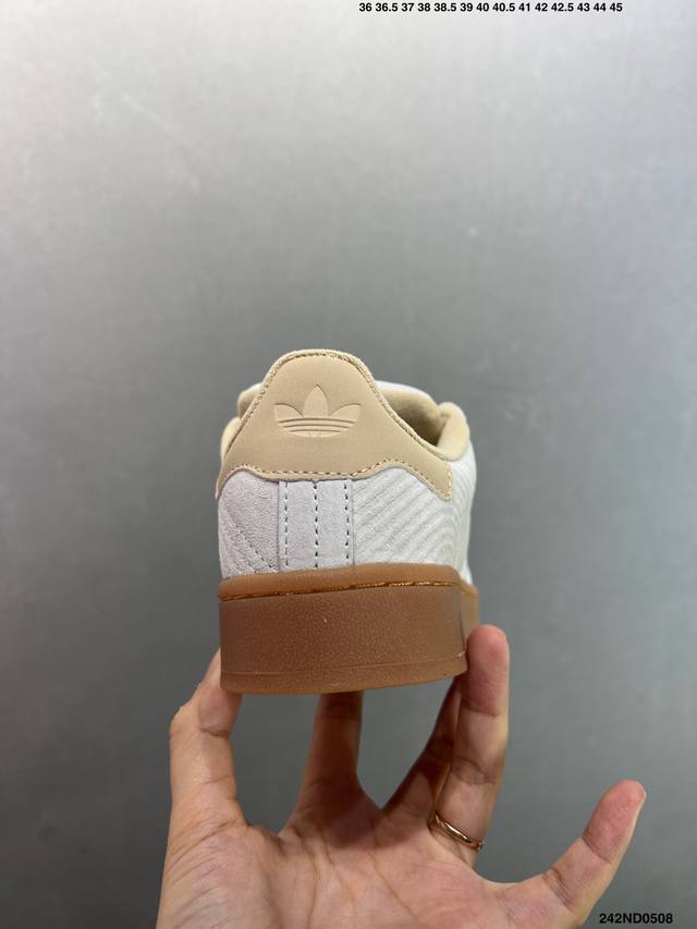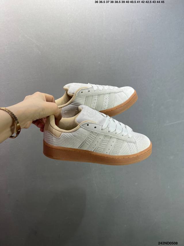 Ad Originals Campus 00S 学院系列面包风经典复古低帮百搭休闲运动板鞋 Ho3474 这次 Originals 选择了以经典复古鞋型 Campus 为蓝本打造全新面包鞋 这款鞋型联名不断 冠希当年对它更是钟爱有加 论牌面丝毫不输贝壳头、Forum 等大热鞋型 这次 Campus 一改 80 年代的瘦长造型 鞋舌、鞋身、鞋底甚至细节都变大了 营造出千禧年前后流行的面包鞋宽大廓形 因此鞋名改为 Campus 00S 鞋身采用绒面皮料搭配白色常规皮革 质感上还是延续了经典 Campus 的设