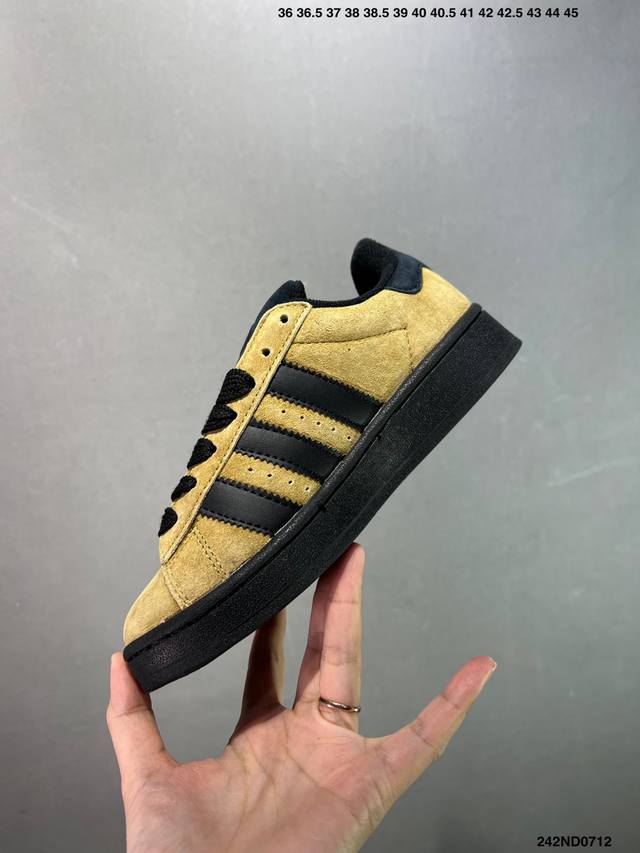 Ad Originals Campus 00S 学院系列面包风经典复古低帮百搭休闲运动板鞋 Ho3474 这次 Originals 选择了以经典复古鞋型 Campus 为蓝本打造全新面包鞋 这款鞋型联名不断 冠希当年对它更是钟爱有加 论牌面丝毫不输贝壳头、Forum 等大热鞋型 这次 Campus 一改 80 年代的瘦长造型 鞋舌、鞋身、鞋底甚至细节都变大了 营造出千禧年前后流行的面包鞋宽大廓形 因此鞋名改为 Campus 00S 鞋身采用绒面皮料搭配白色常规皮革 质感上还是延续了经典 Campus 的设