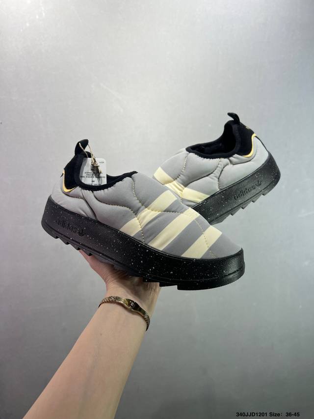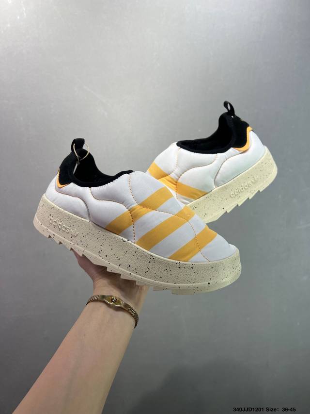 Ad Originals puffylette 一脚蹬袜套防水保暖面包鞋运动鞋 If4326 鞋面采用带有柔软内衬的编织材质制成 搭配鞋头显眼的 Three Stripes 图样 鞋跟与鞋垫亦有 Trefoil Logo 往下延伸则是搭载带有品牌标志的中底和橡胶外底 Originals puffylette 首发配色为黑白主题配色 全新套穿式鞋款 puffylette 释出 有柔软内衬的编织材质制成 搭配鞋头显眼的 Three Stripes 图样 Size:36 36.5 37 38 38.5 39 4